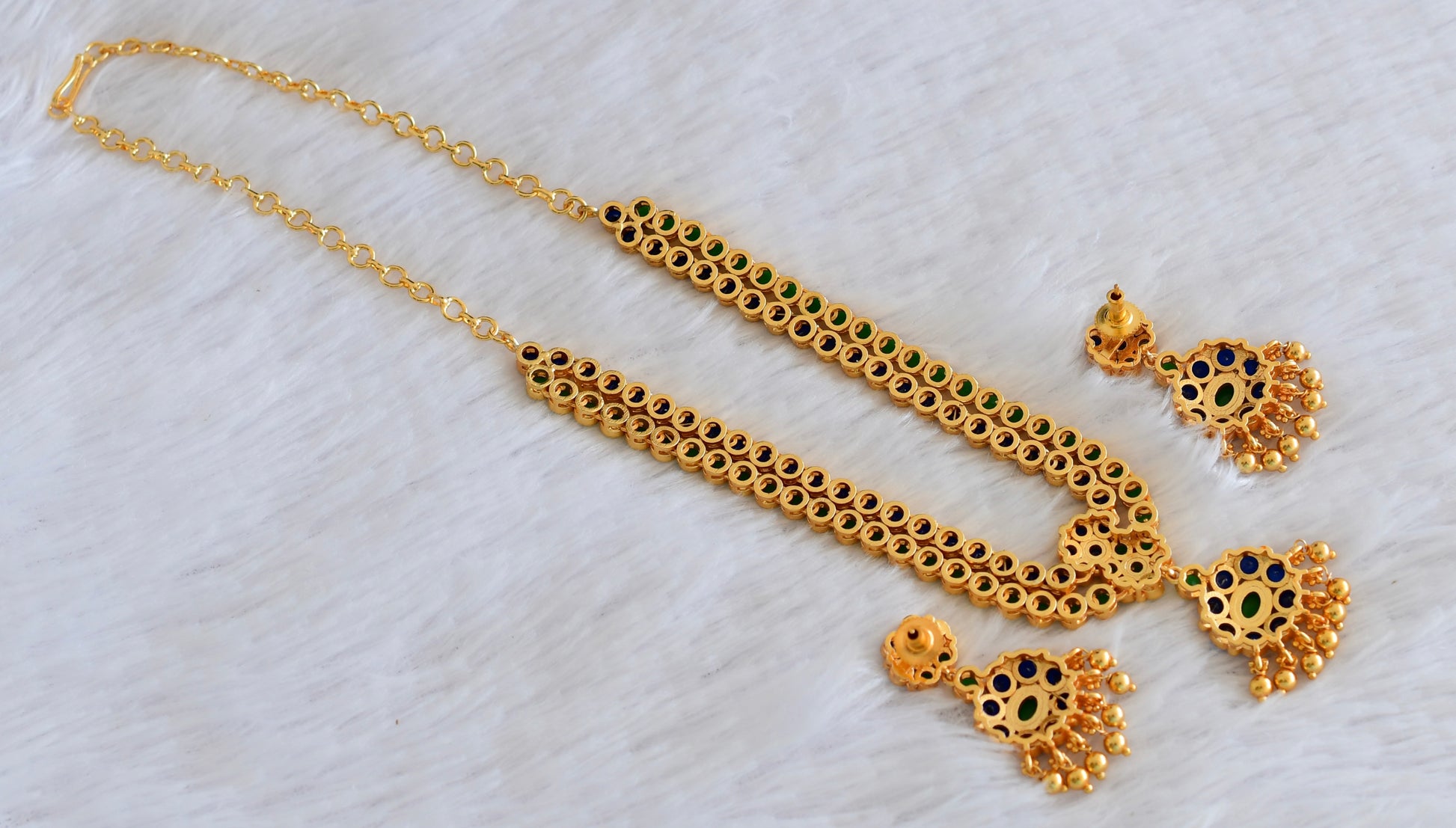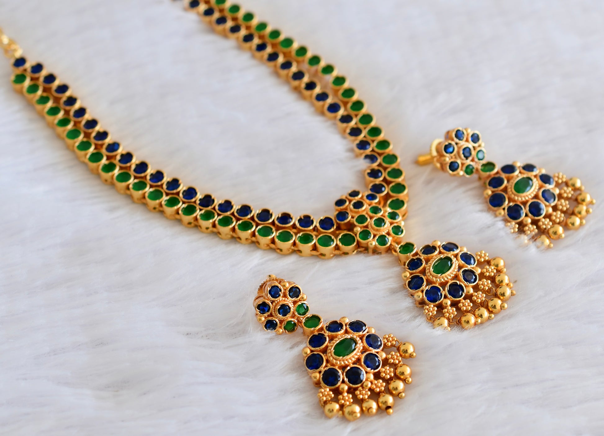 Matte finish blue-green double layer attigai/necklace set dj-53179