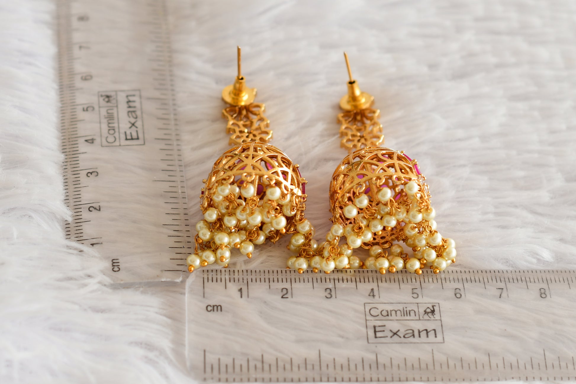 Matte finish cz emerald pearl flower jhumkka dj-50515