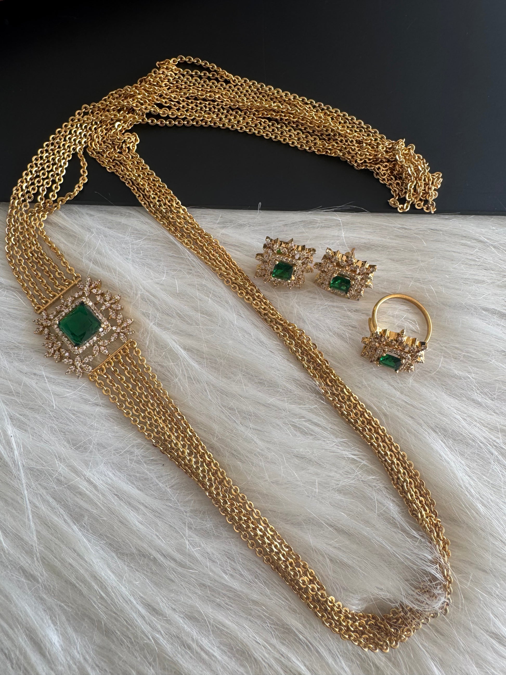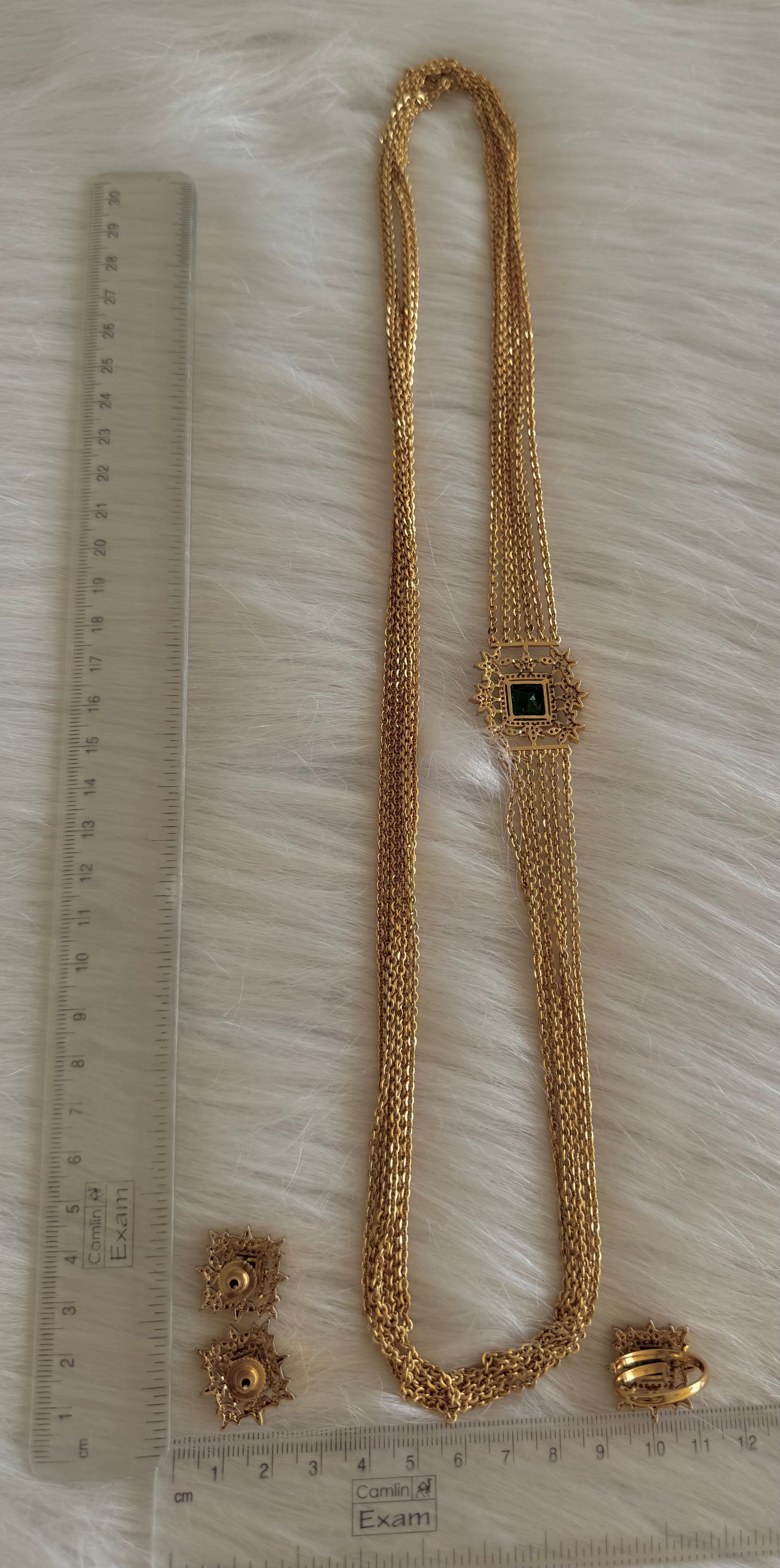 Matte finish cz green block stone mugappu chandra haar set dj-51243