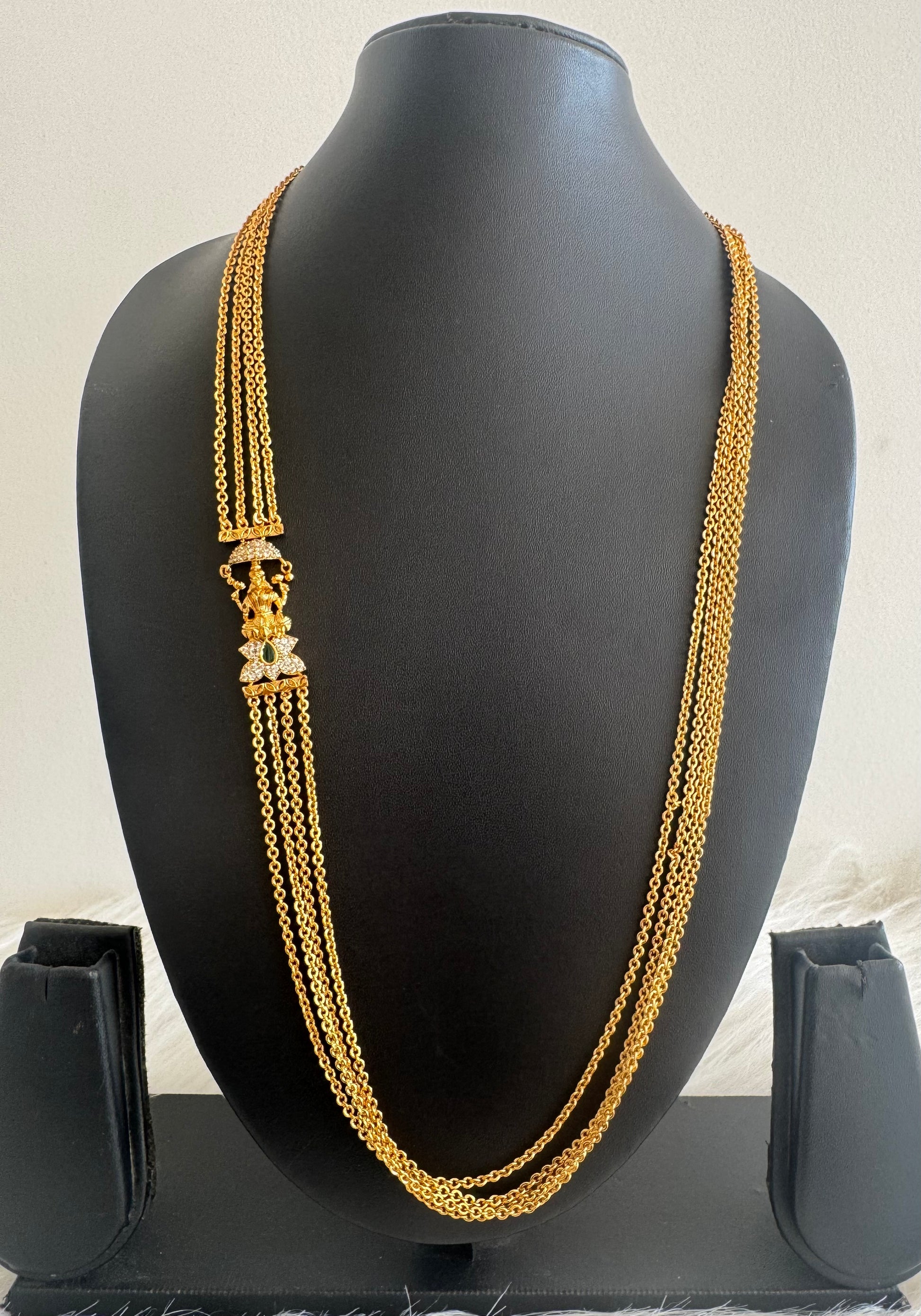 Matte finish cz green lakshmi lotus mugappu chandra haar dj-51240