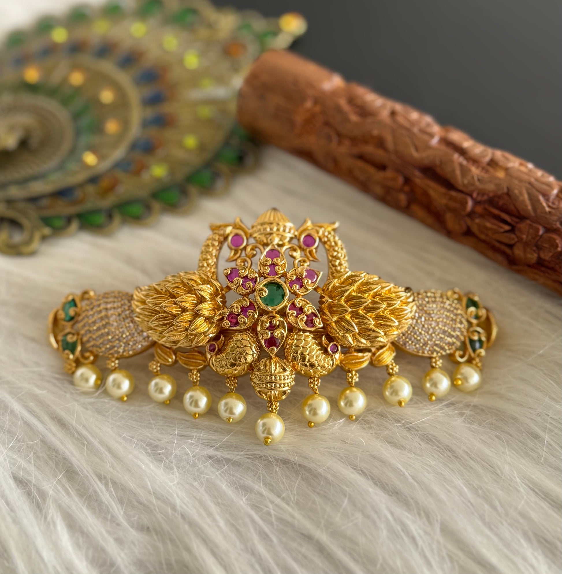 Matte finish cz kemp-green flower peacock hair clip dj-51348