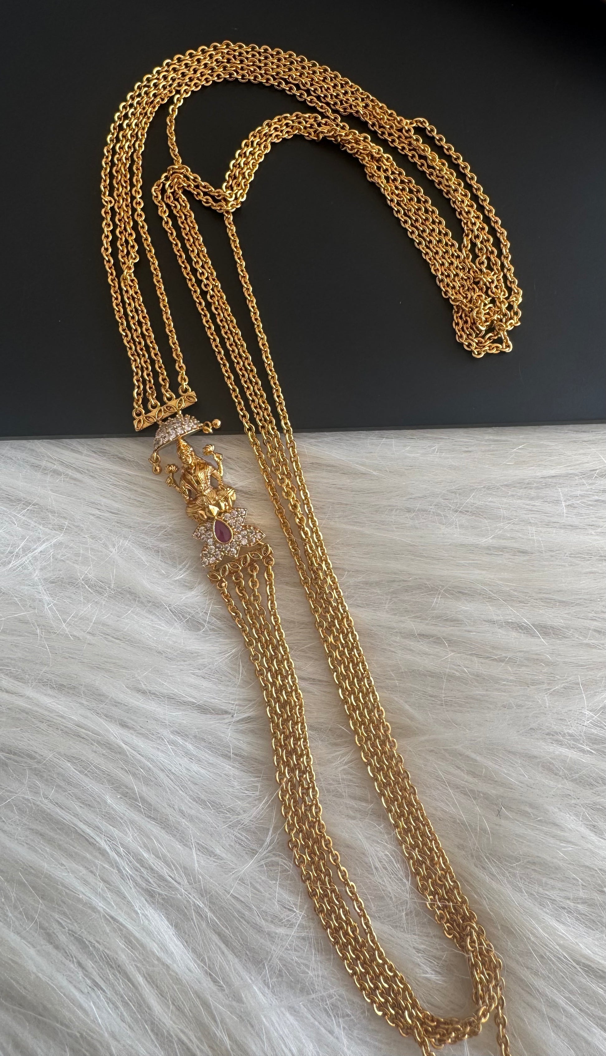 Matte finish cz kemp lakshmi lotus mugappu chandra haar dj-51239
