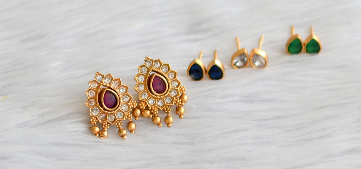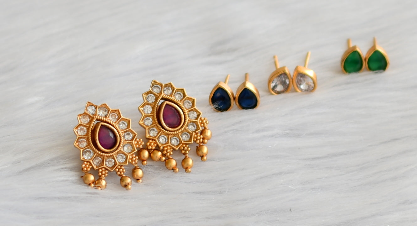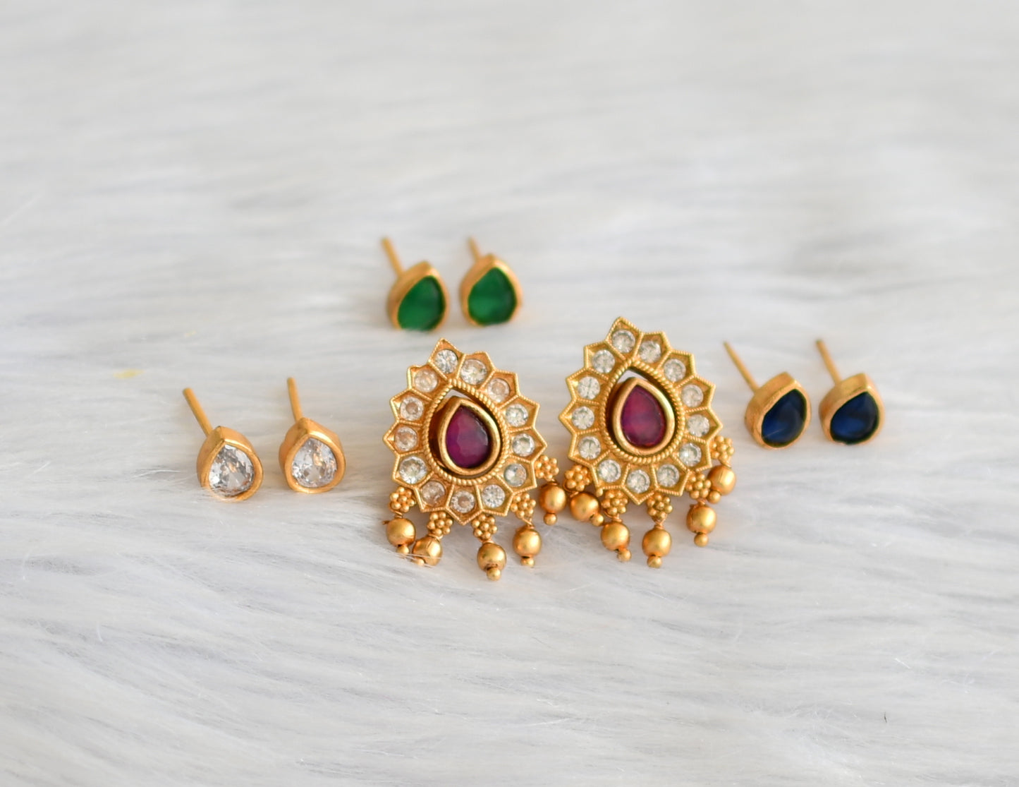 Matte finish cz ruby-green-blue-white changeable earrings dj-43484