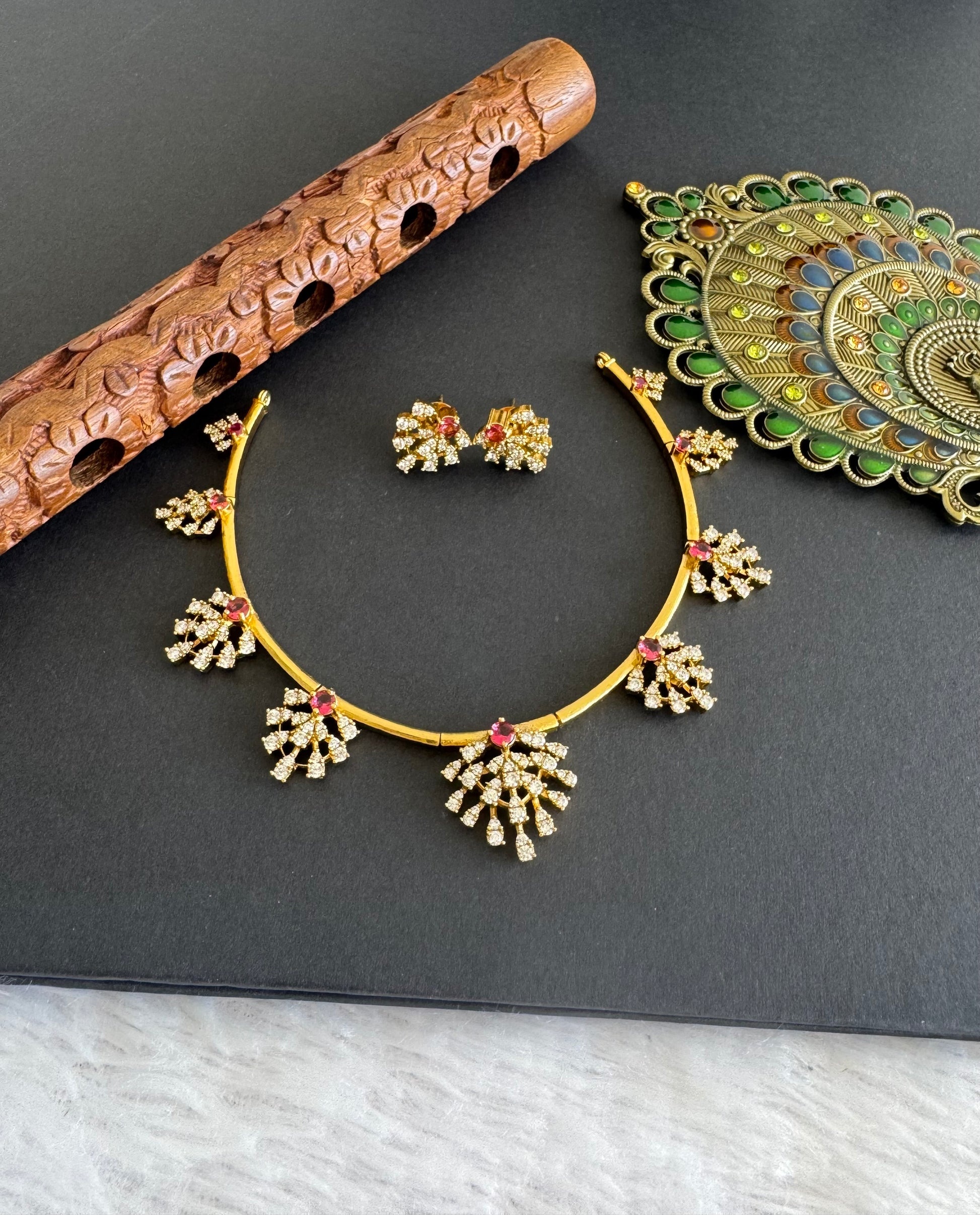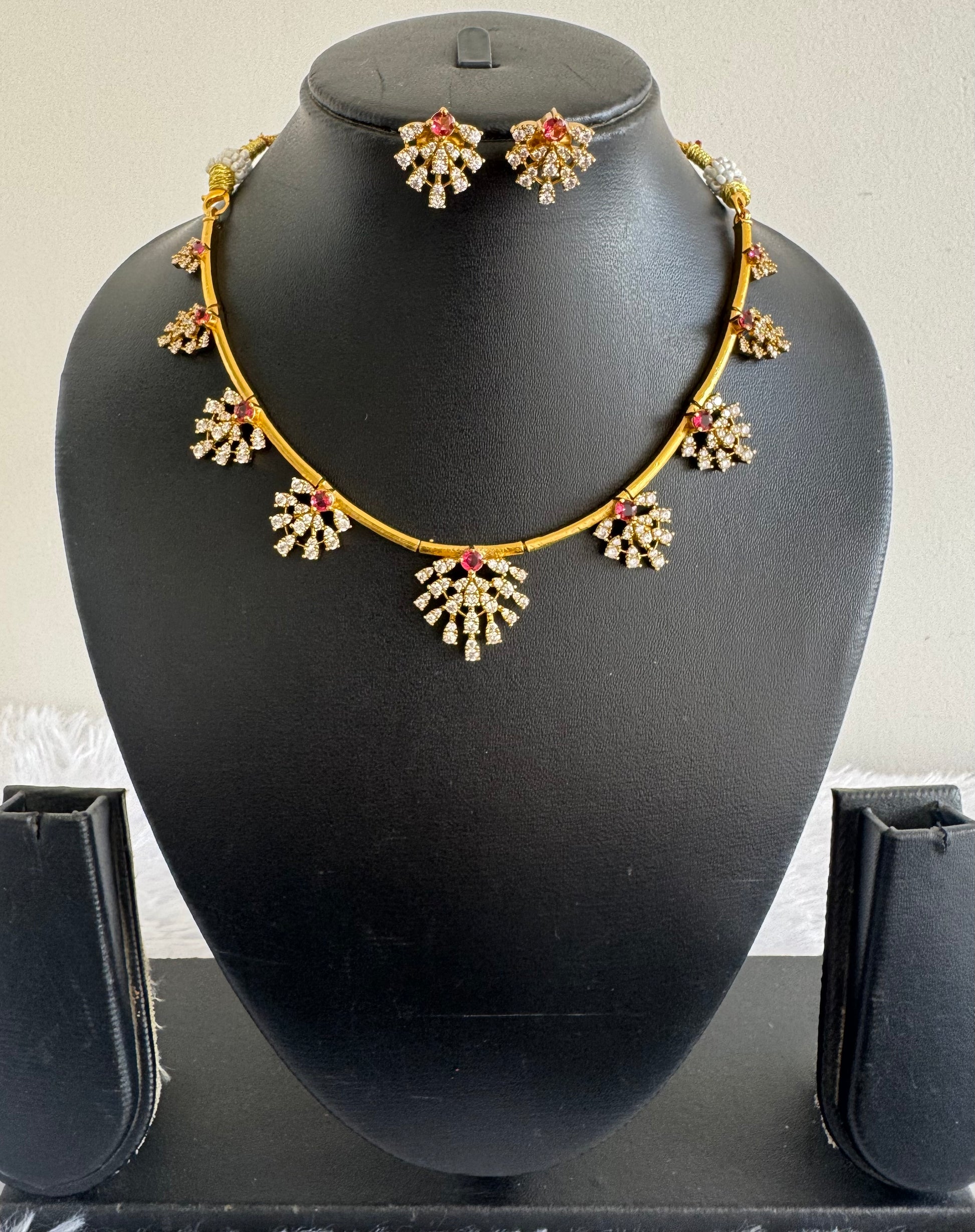 Matte finish cz white-magenta pink kanti necklace set dj-52117