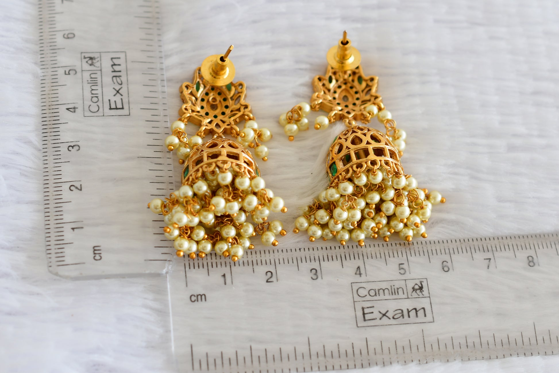 Matte finish green-white pearl lotus jhumkka dj-52152