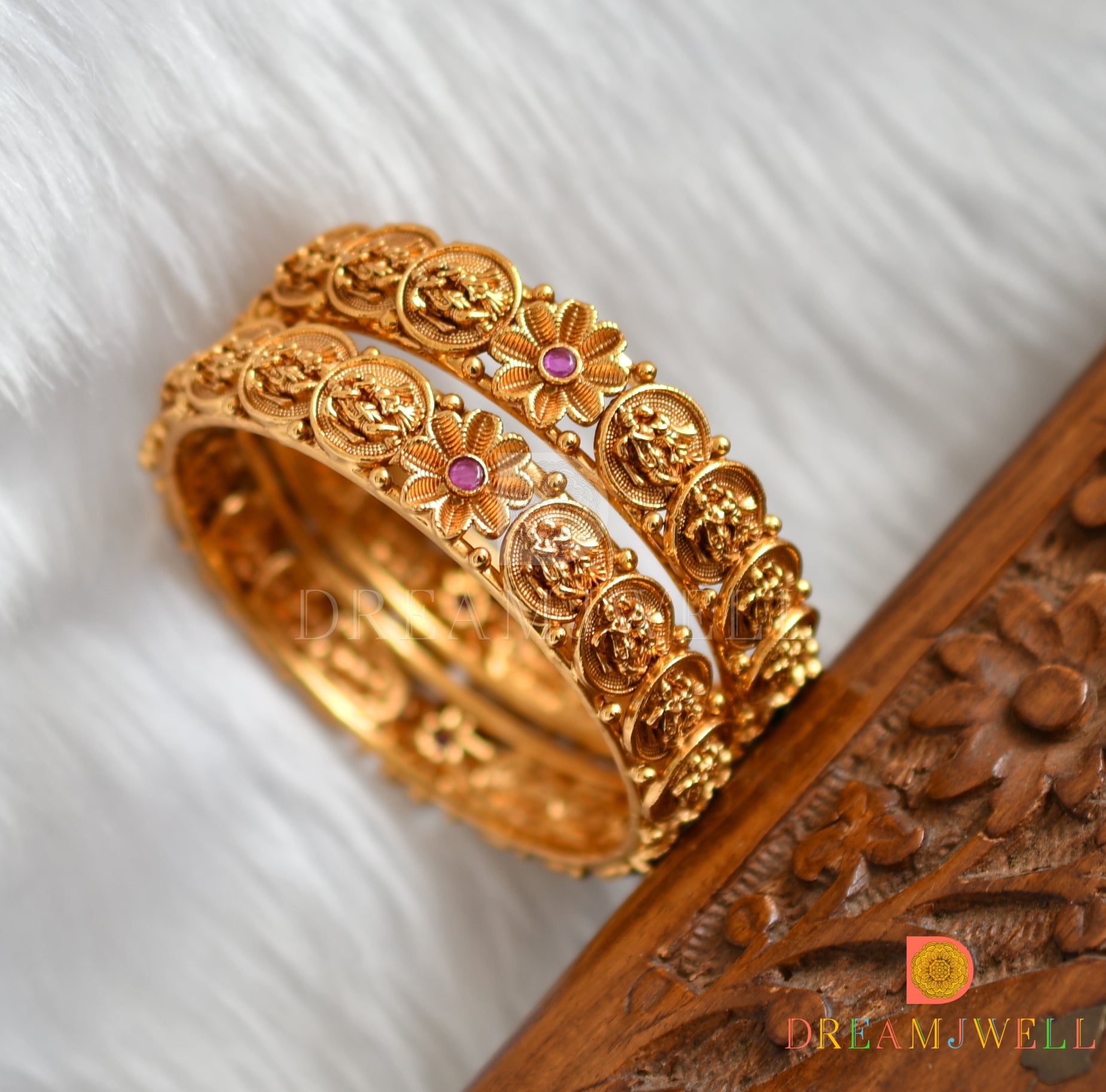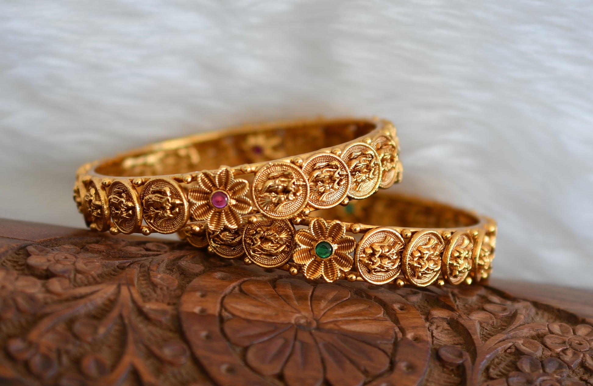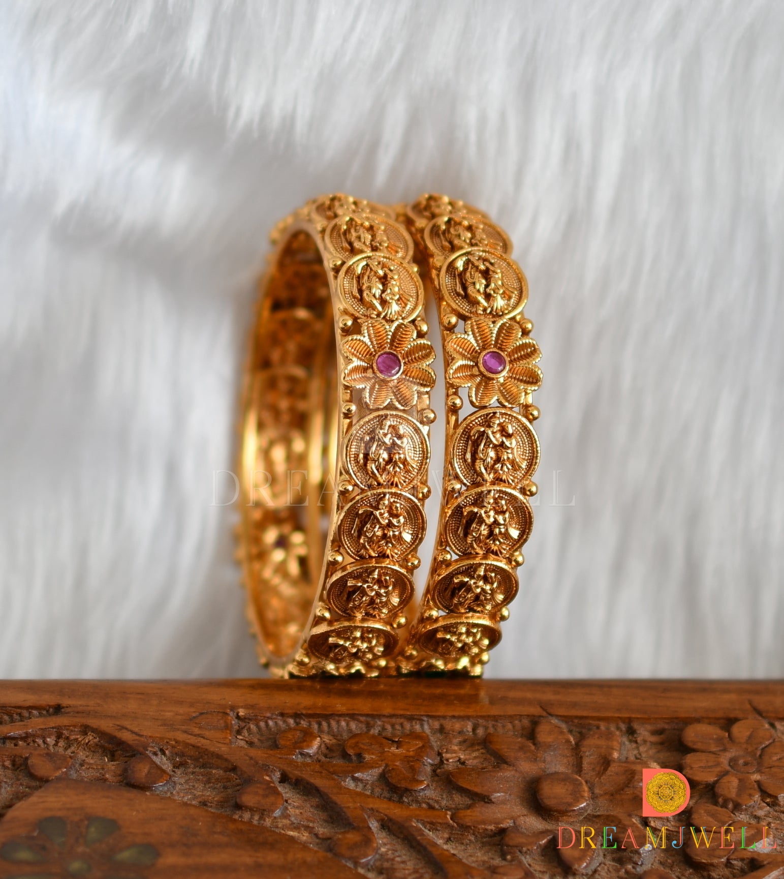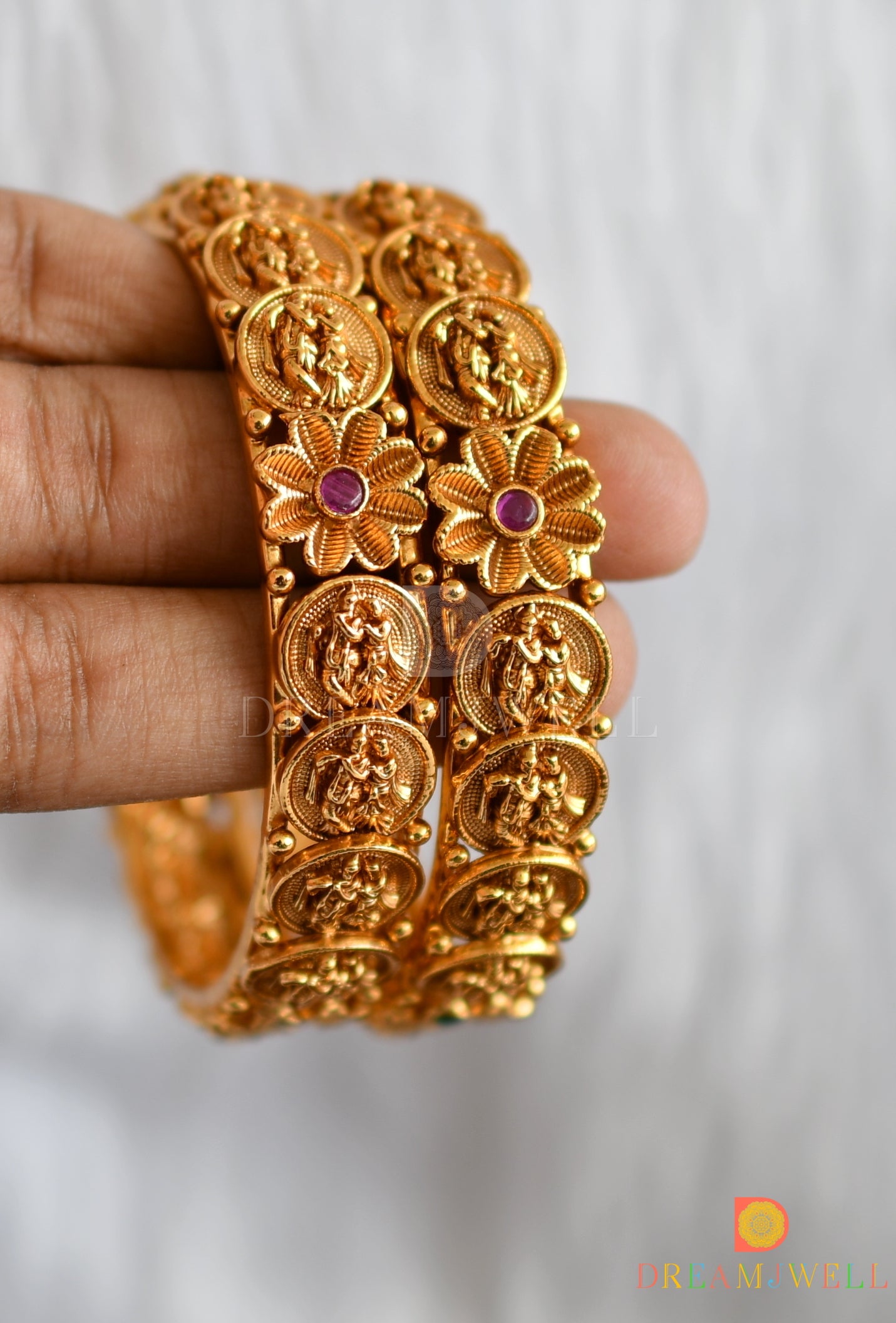Matte finish ruby-green flower Radha-Krishna coin Bangles (2.6) dj-38325
