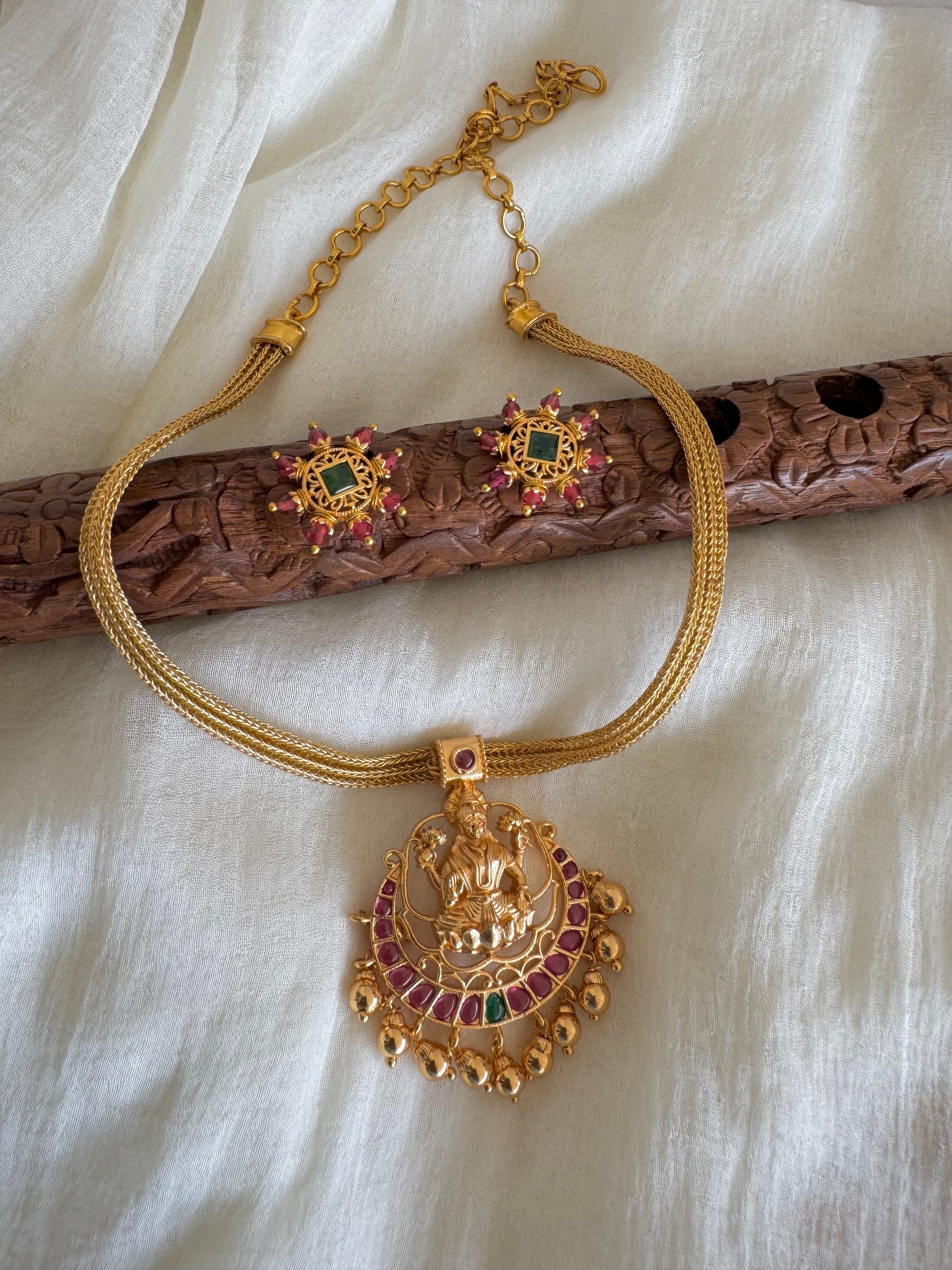 Matte finish kemp-green lakshmi necklace set dj-52612