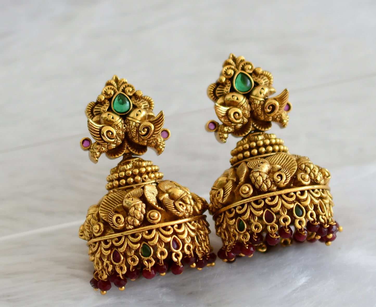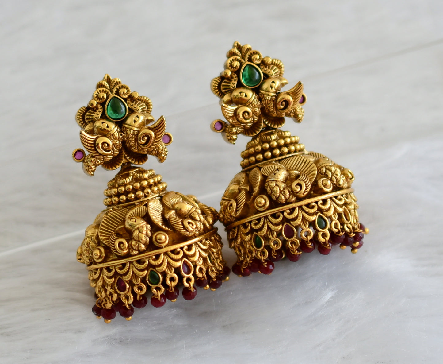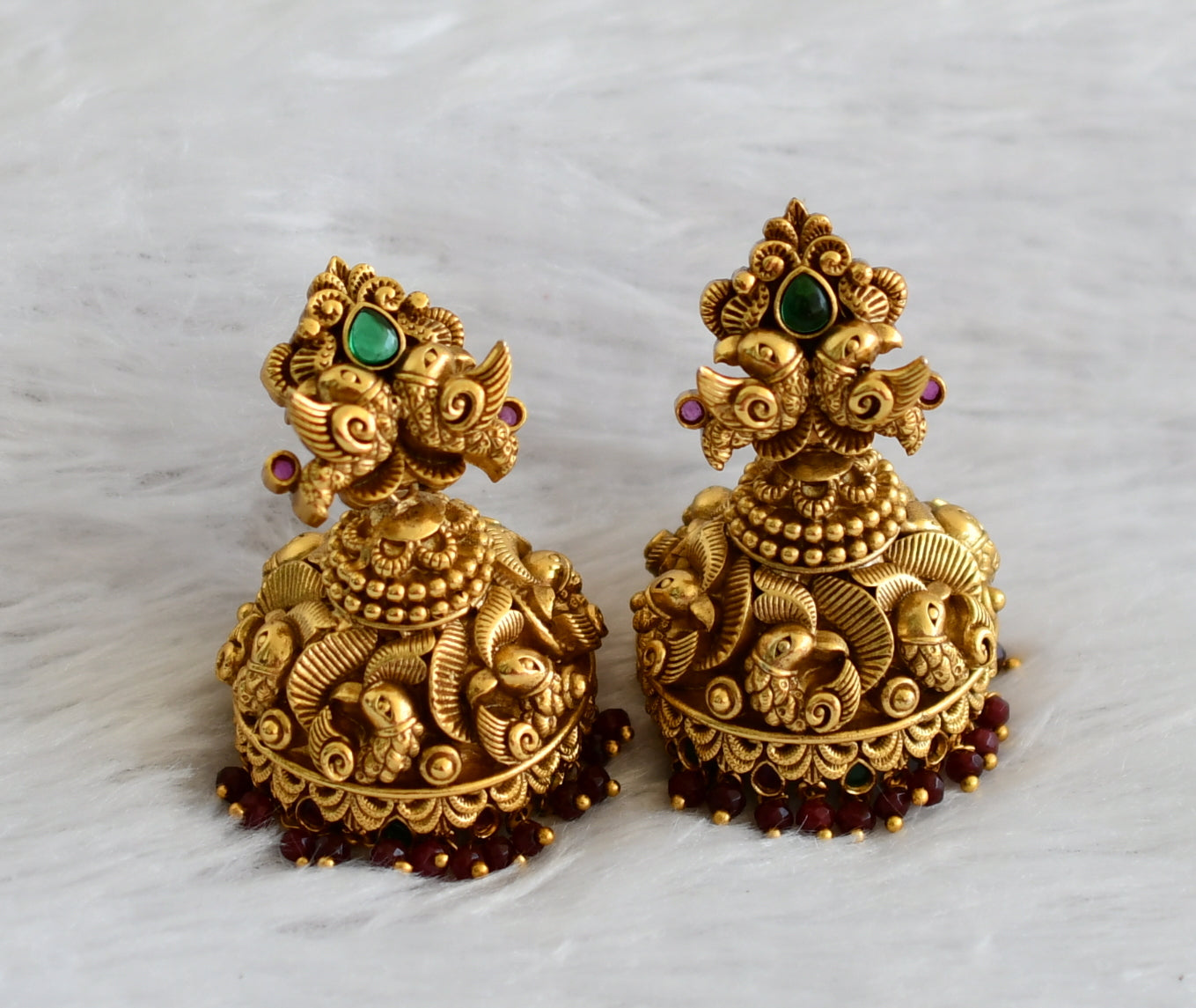 Matte finish kemp-green peacock big nakshi jhumkka dj-47094