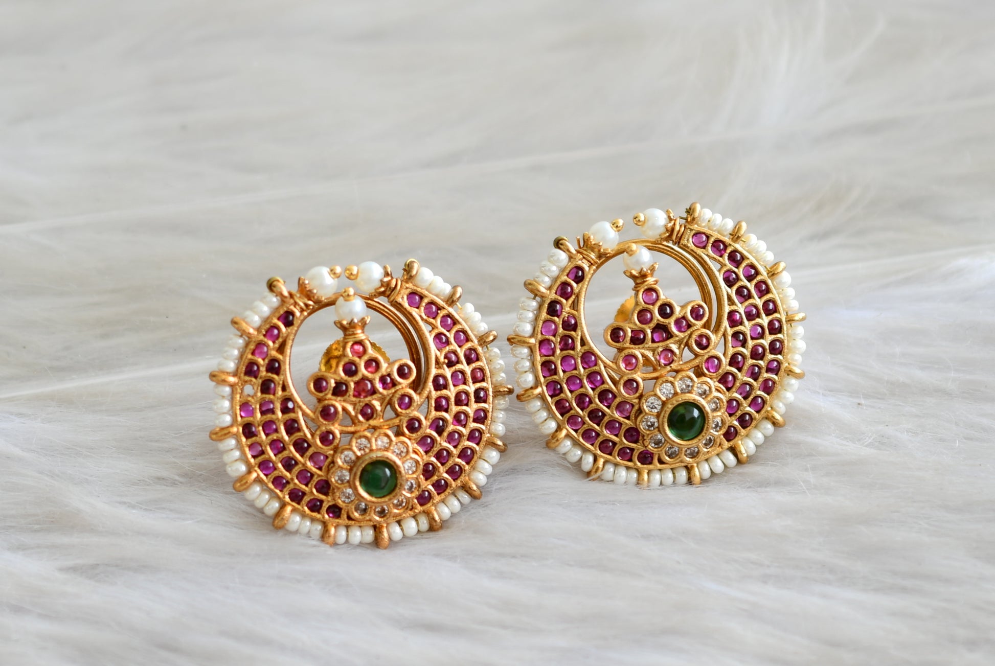 Matte finish kemp-green-pearl moon stud/earrings dj-42878