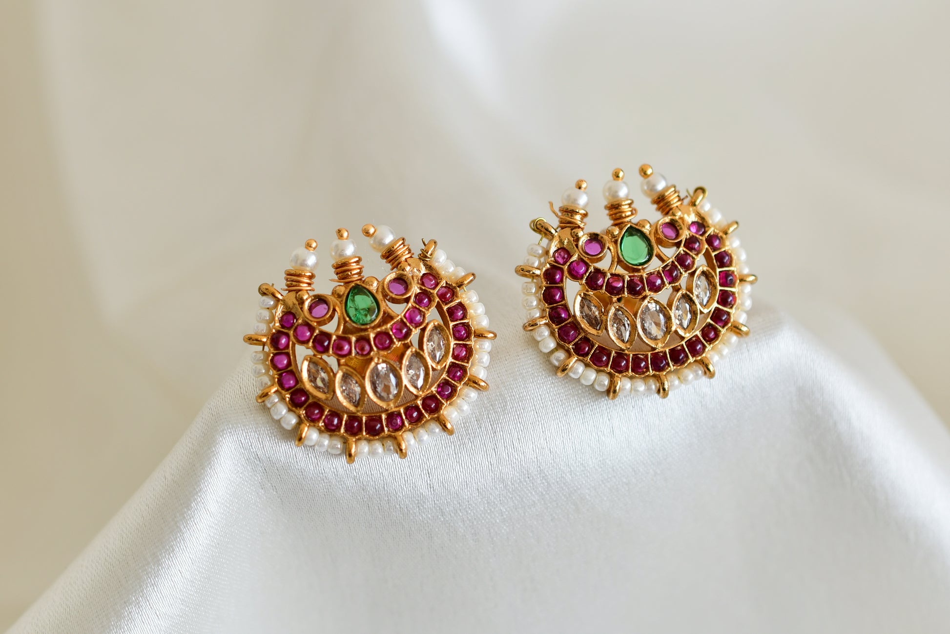 Matte finish kemp-green pearl moon stud/earrings dj-52567