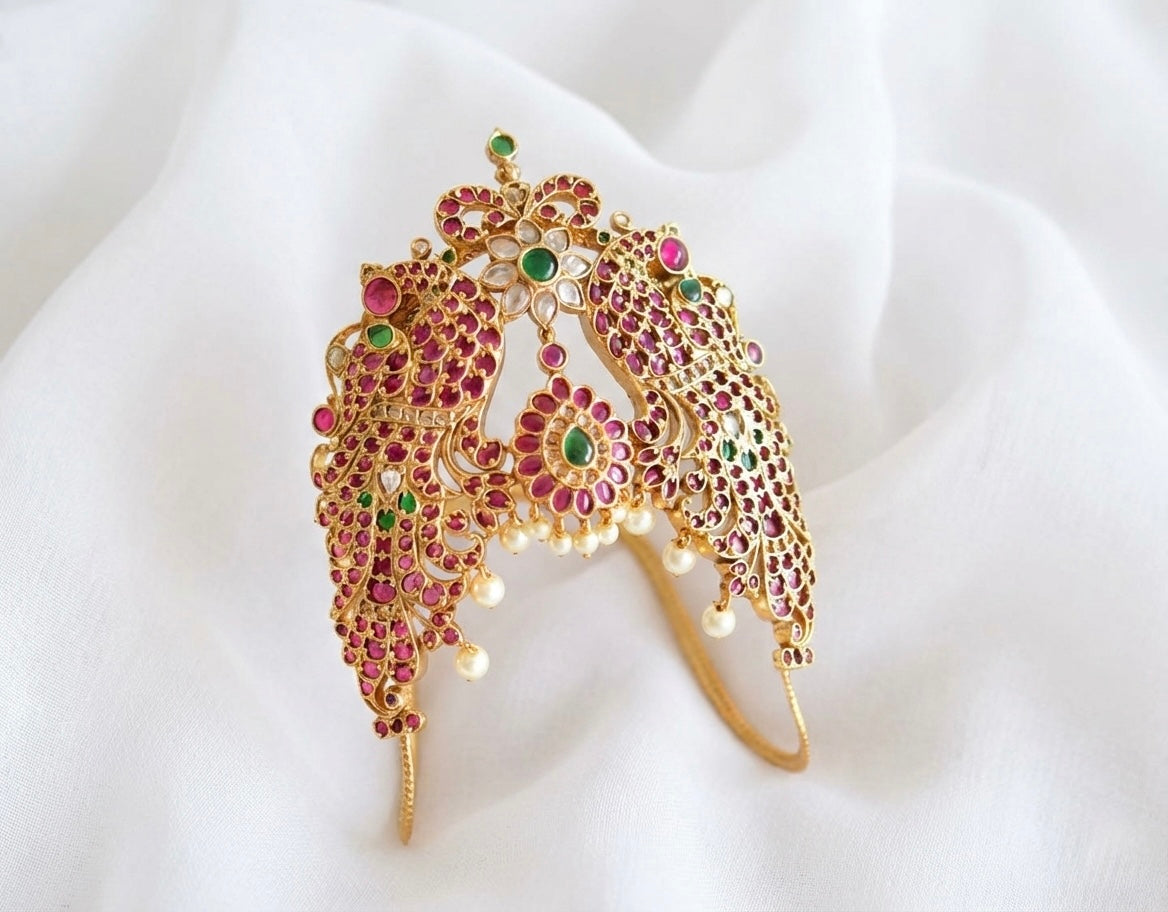 Matte finish kemp-green pearl peacock flower bridal vanki/bajuband dj-51970