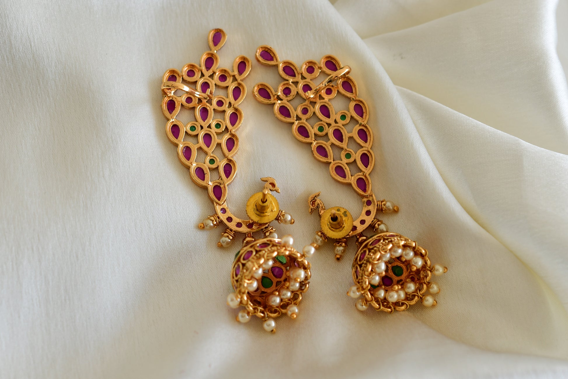 Matte finish kemp-green-pearl peacock khanpool jhumkka dj-52560
