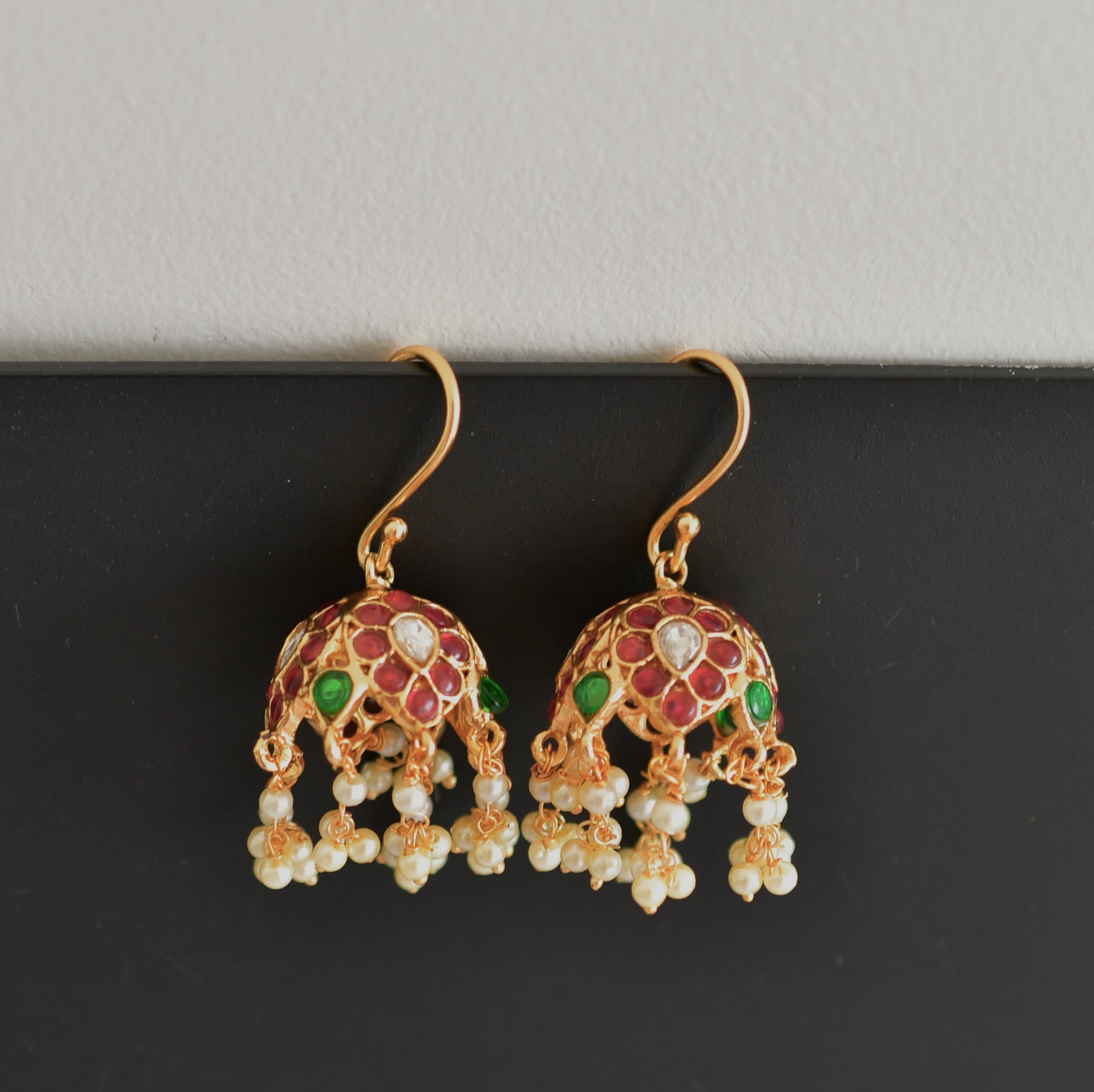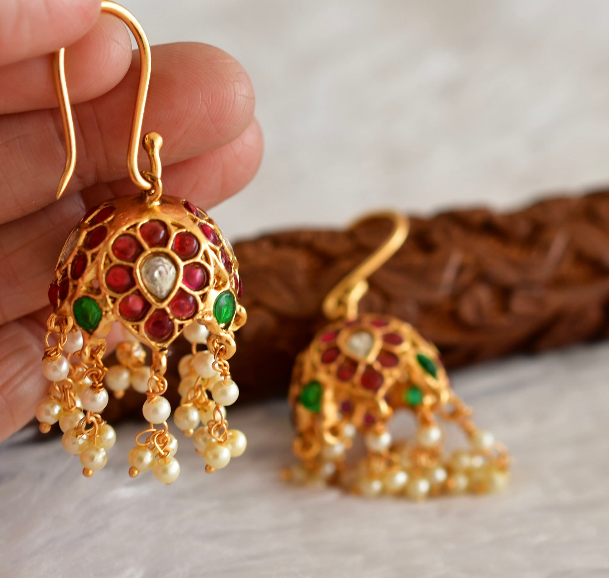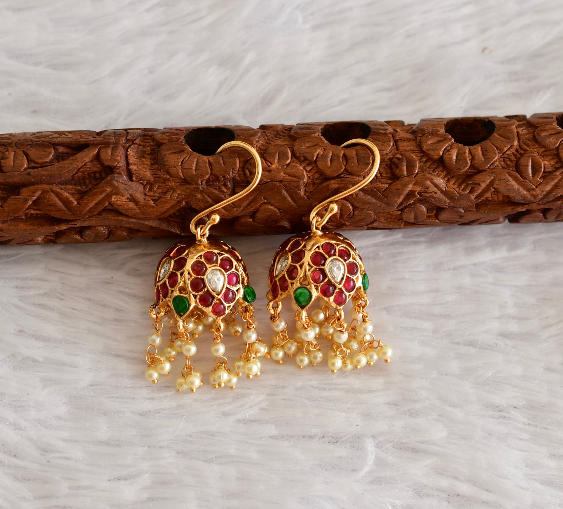 Matte finish kemp-green-white pearlx hook jhumkka dj-46514