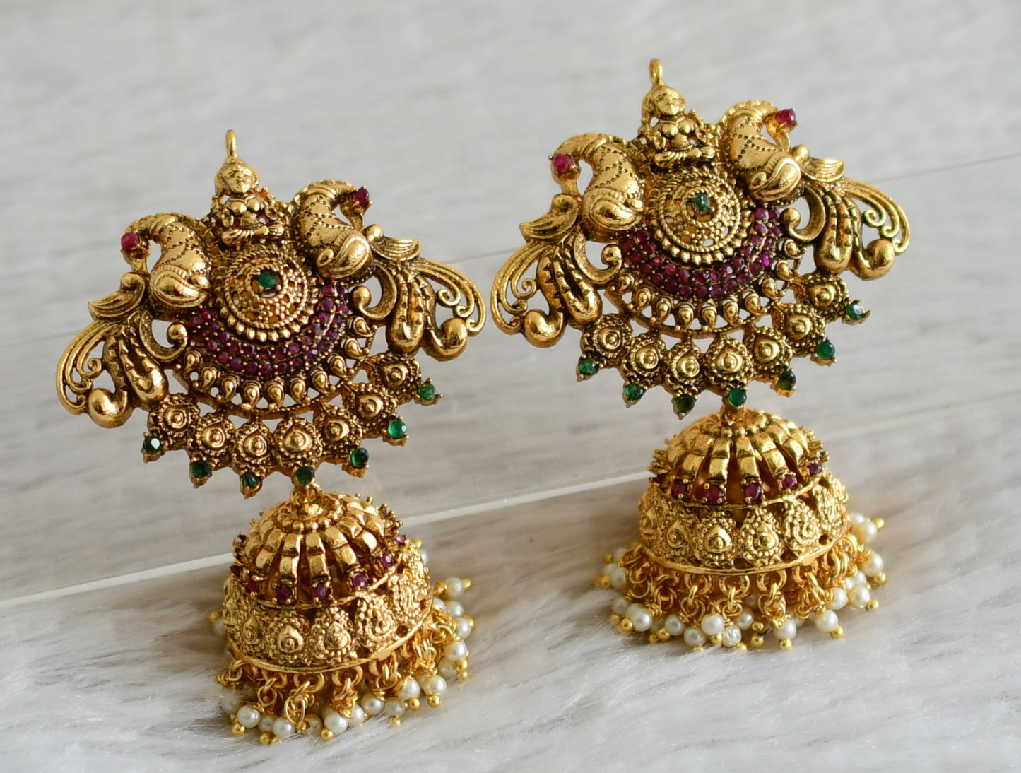 Matte finish ruby-emerald Big Lakshmi-peacock jhumkka dj-35998