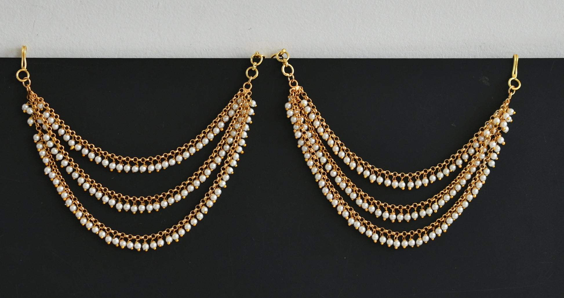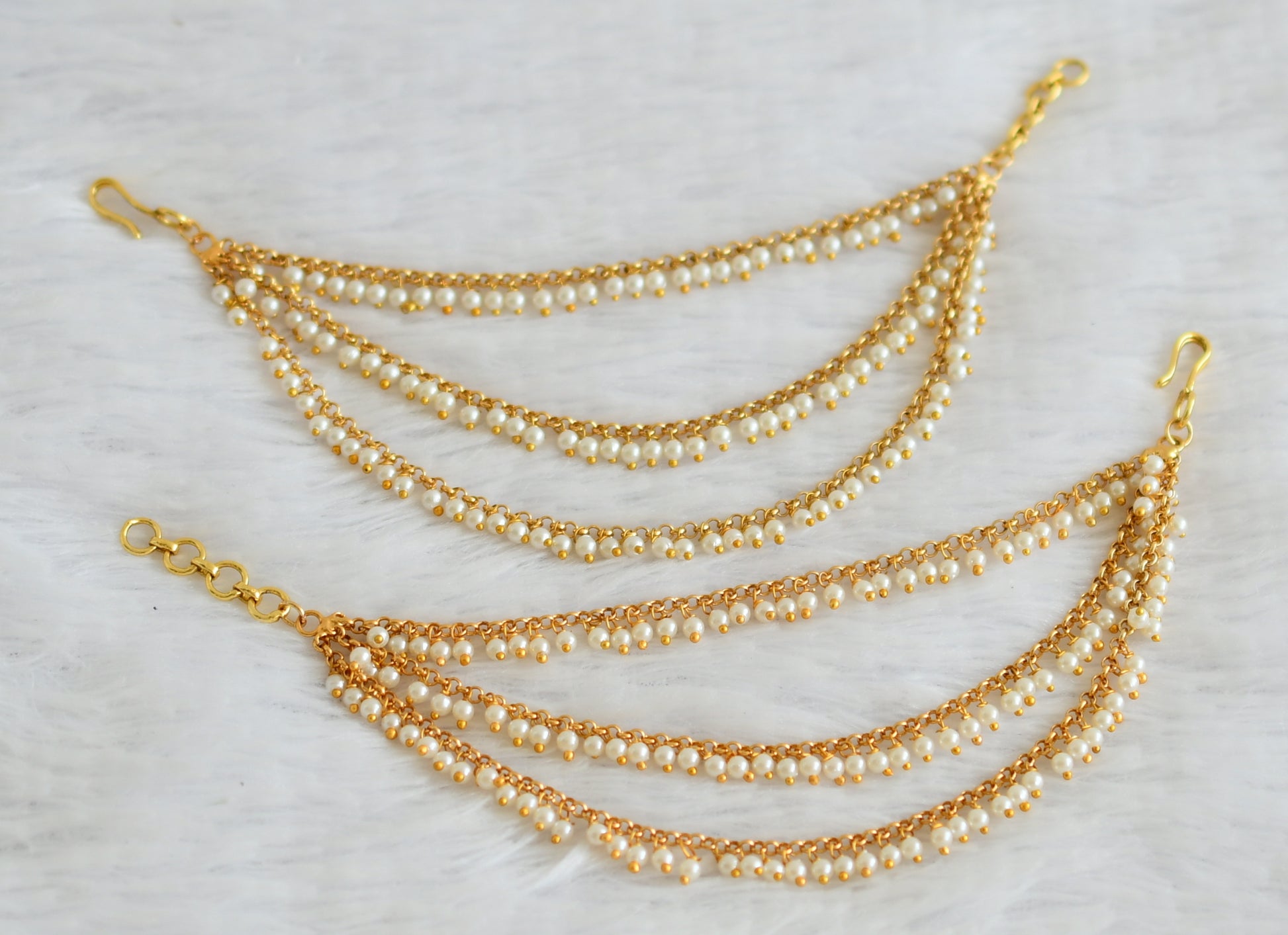 Matte finish pearl multi layer earrings side chain dj-39522