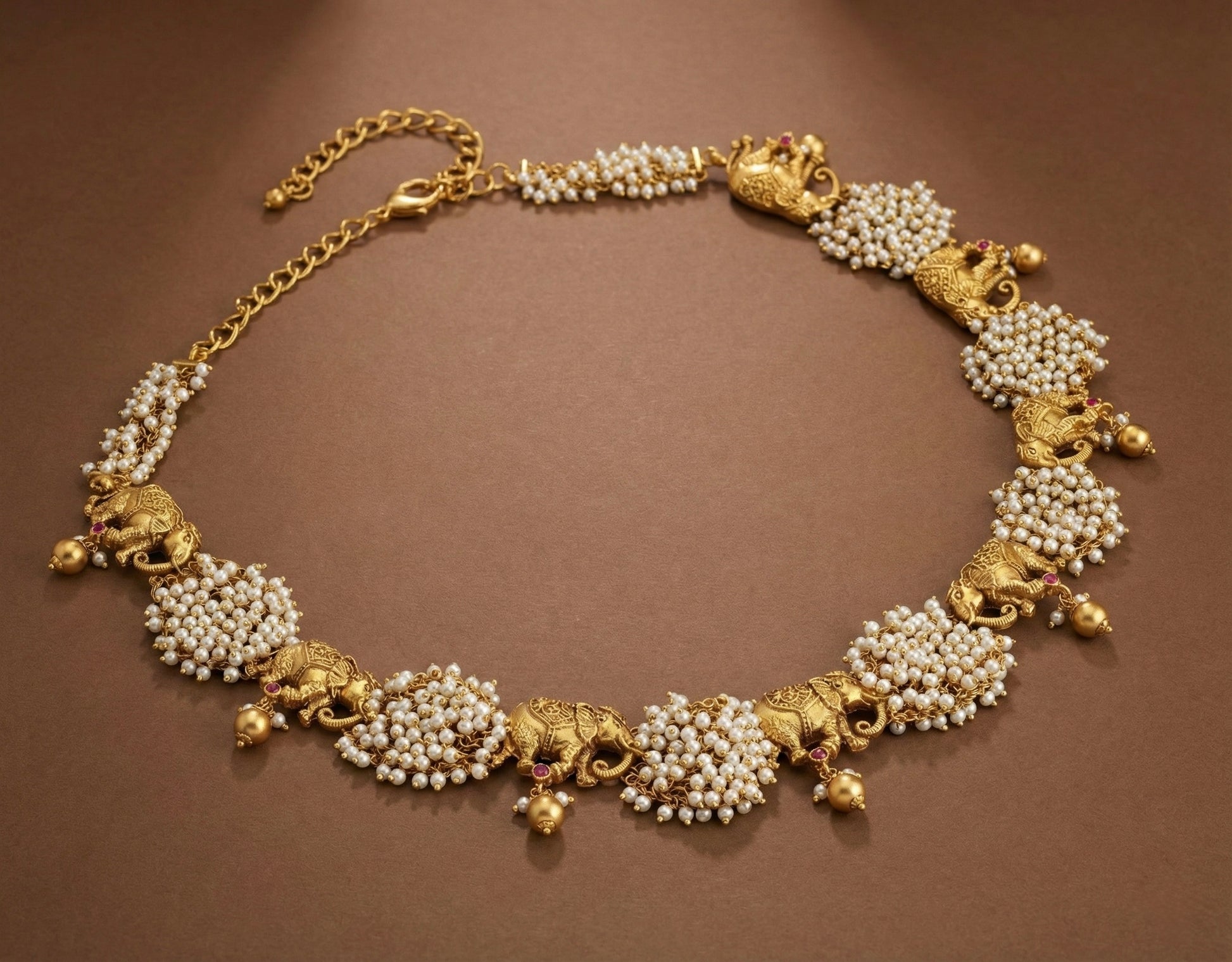 Matte finish pink pearl cluster Elephant Waist band dj-39524