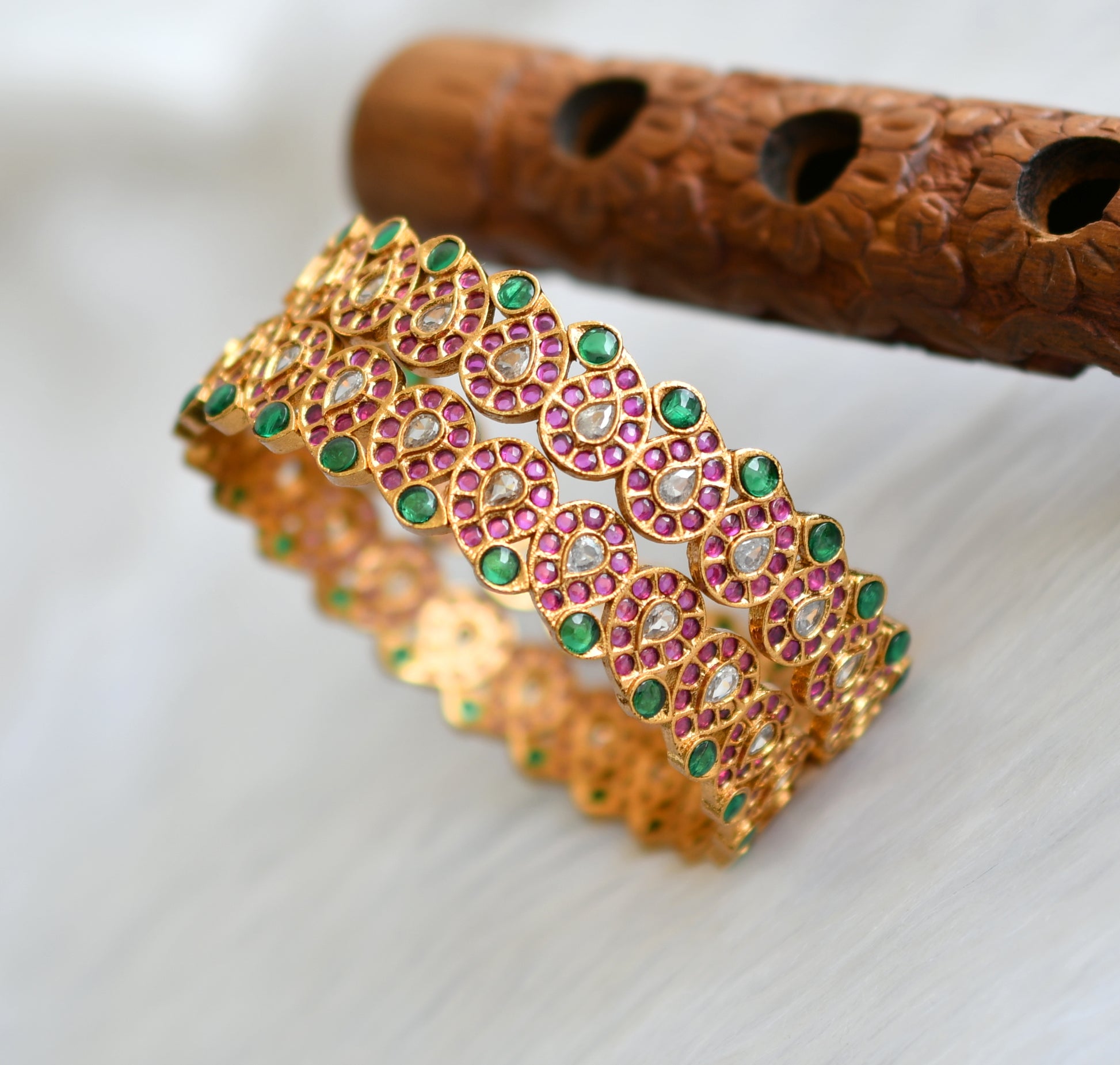 Matte finish kemp-green-white mango bangles(2.8) dj-39838