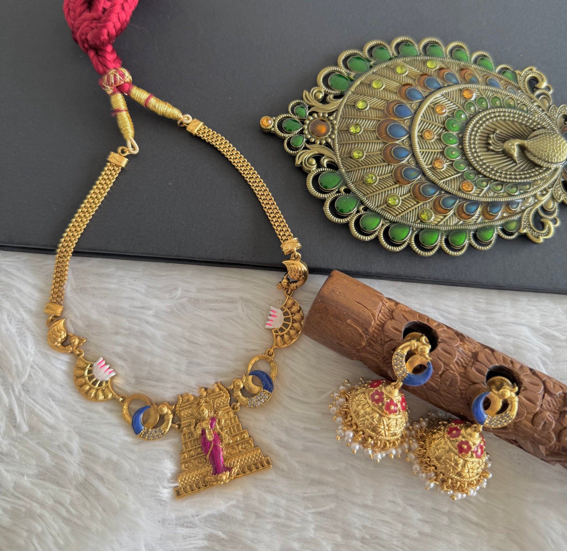 Matte finish Red-pink-blue meenakari Ma Meenakshi necklace set dj-52075