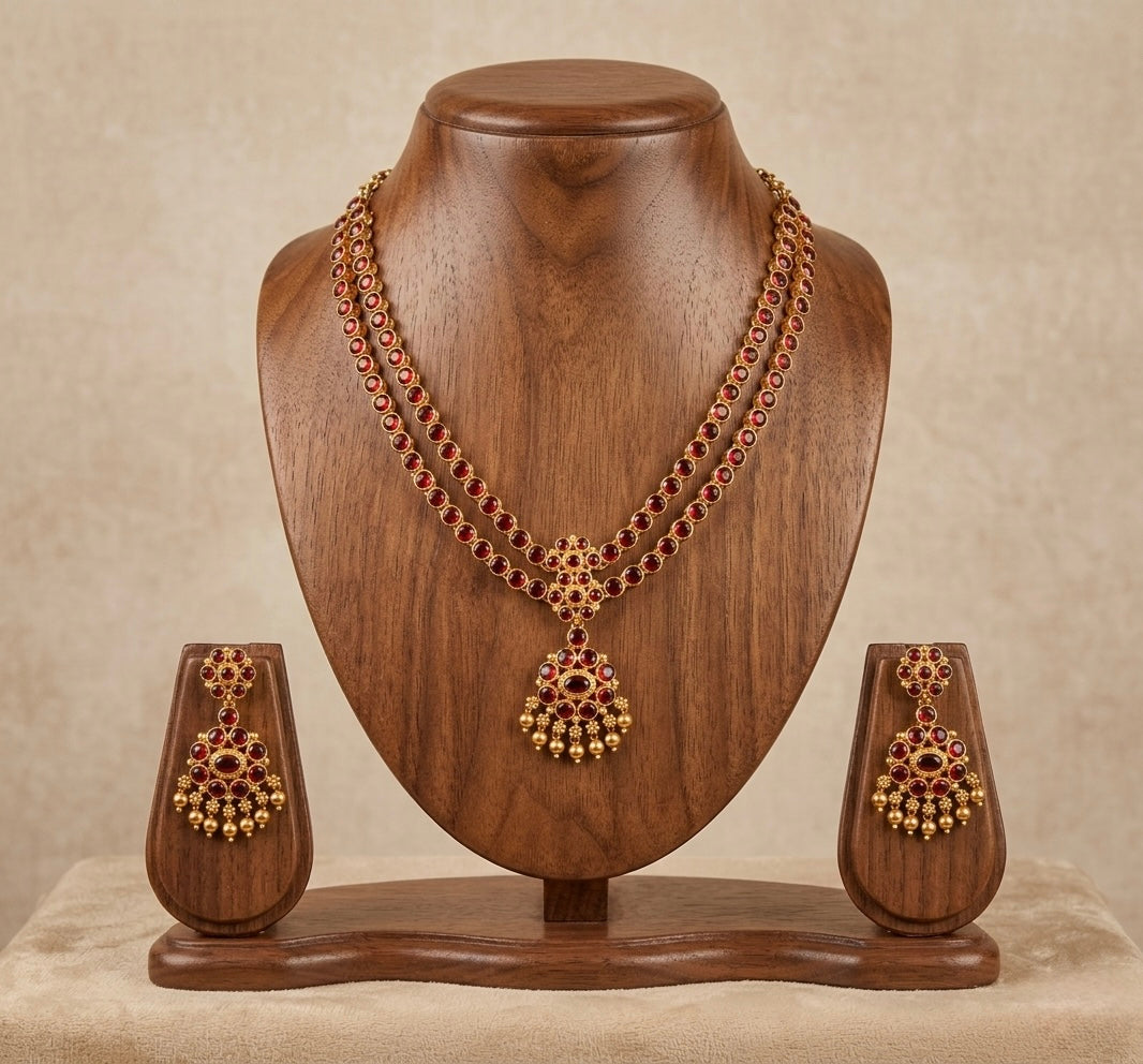 Matte finish maroon double layer attigai/necklace set dj-53180