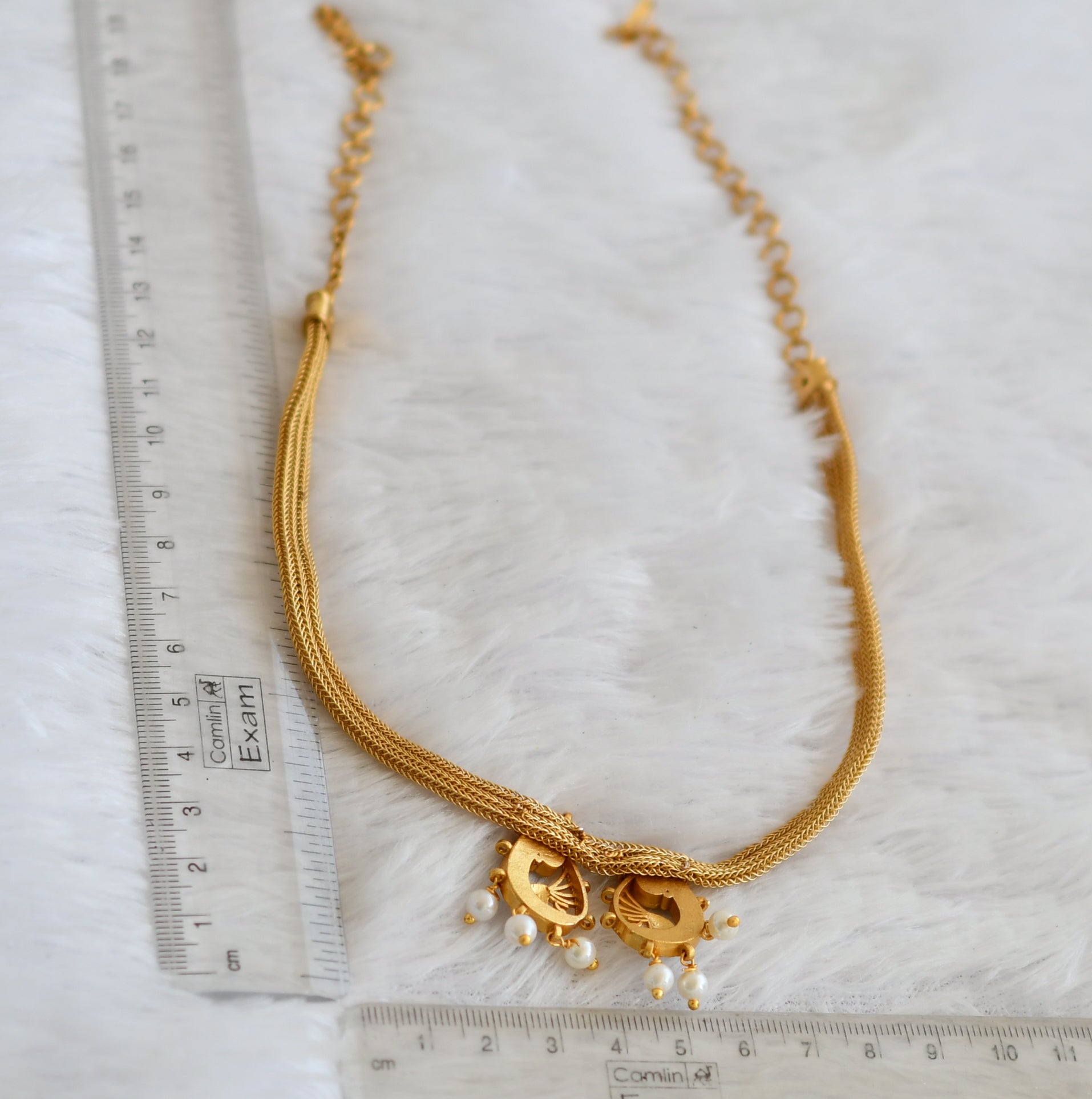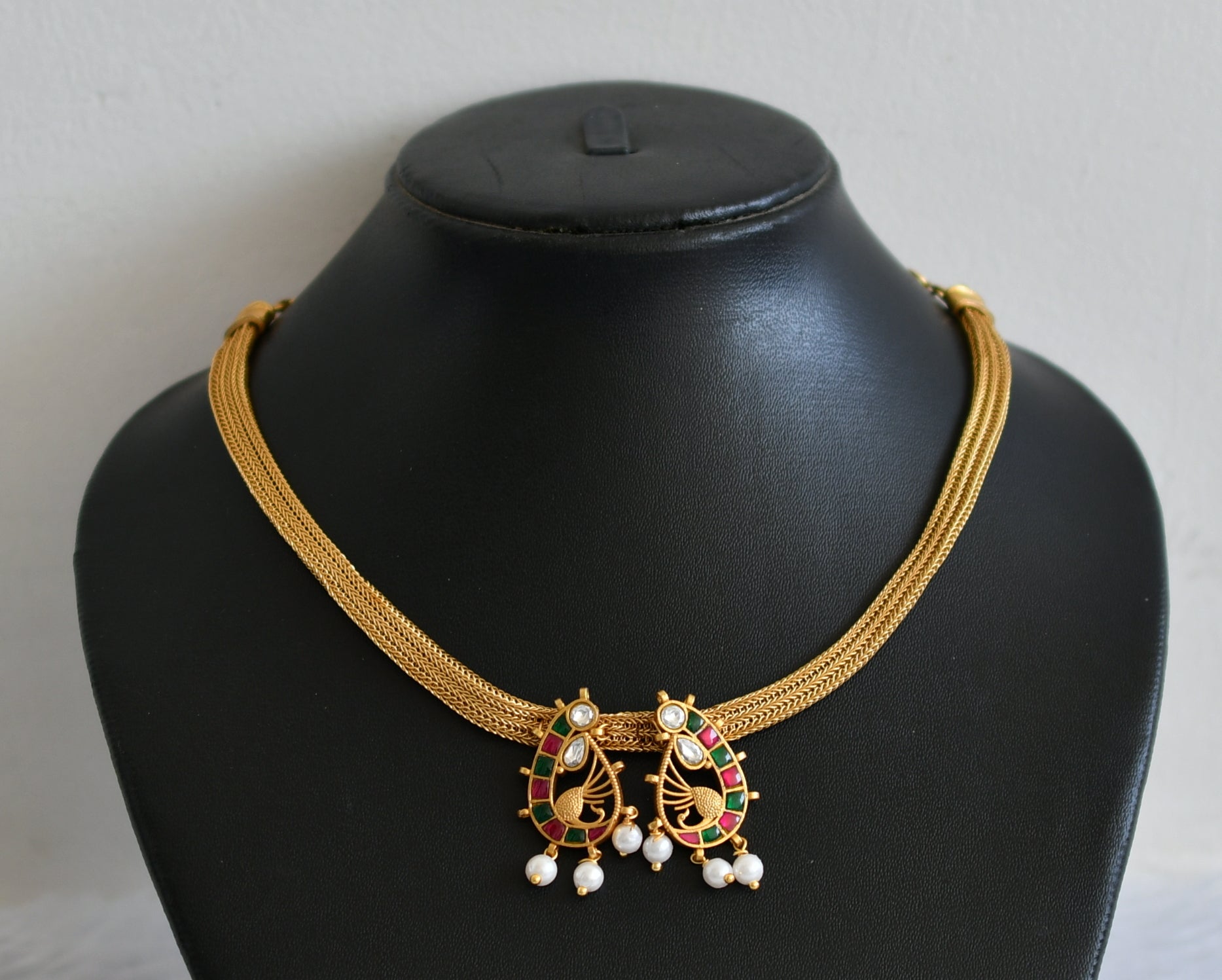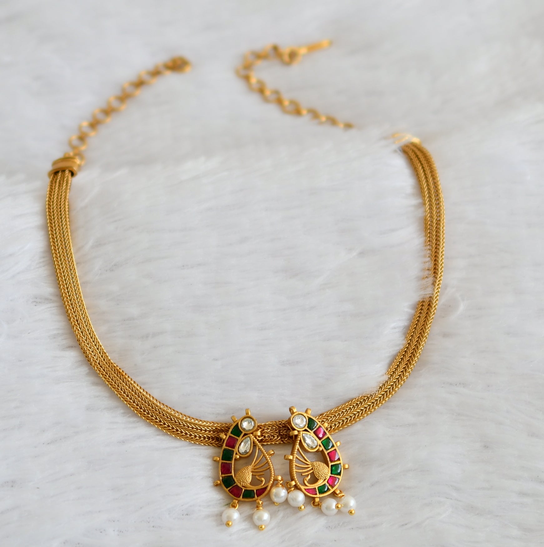 Matte finish ruby-green-white kundan jadau peacock necklace dj-50110