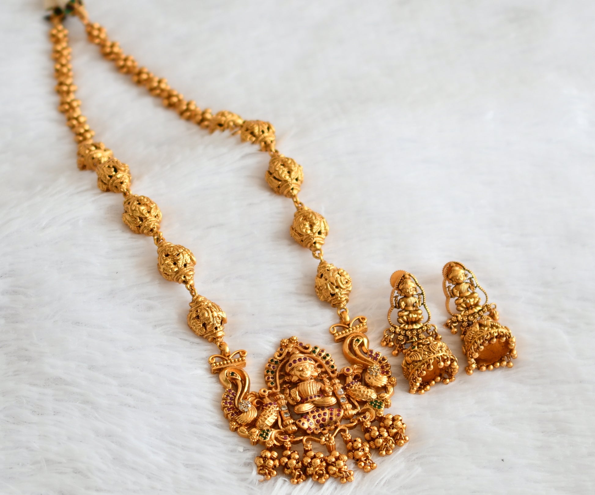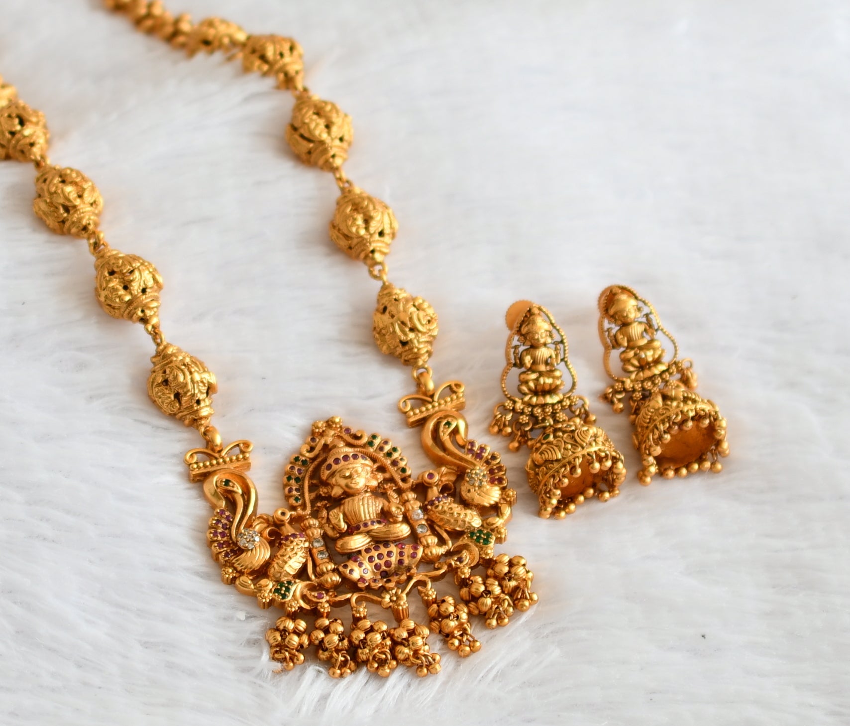 Matte finish ruby-green-white lakshmi peacock short haar set dj-50749