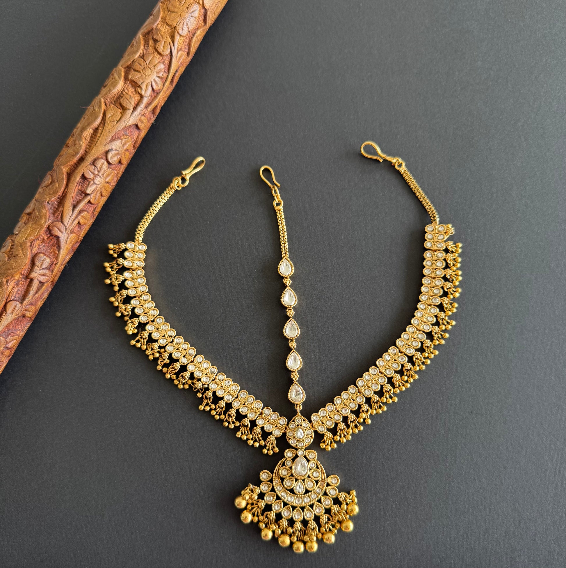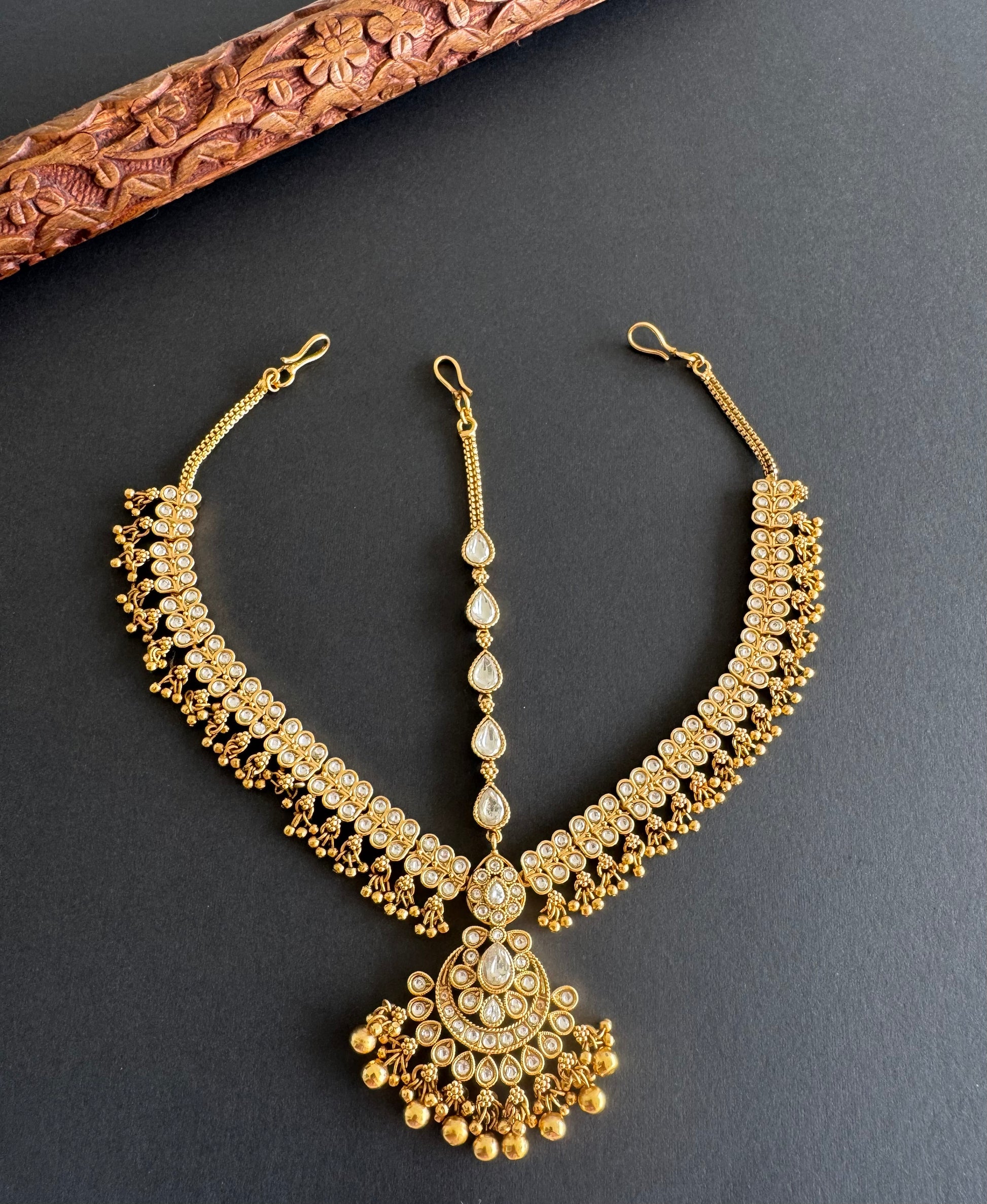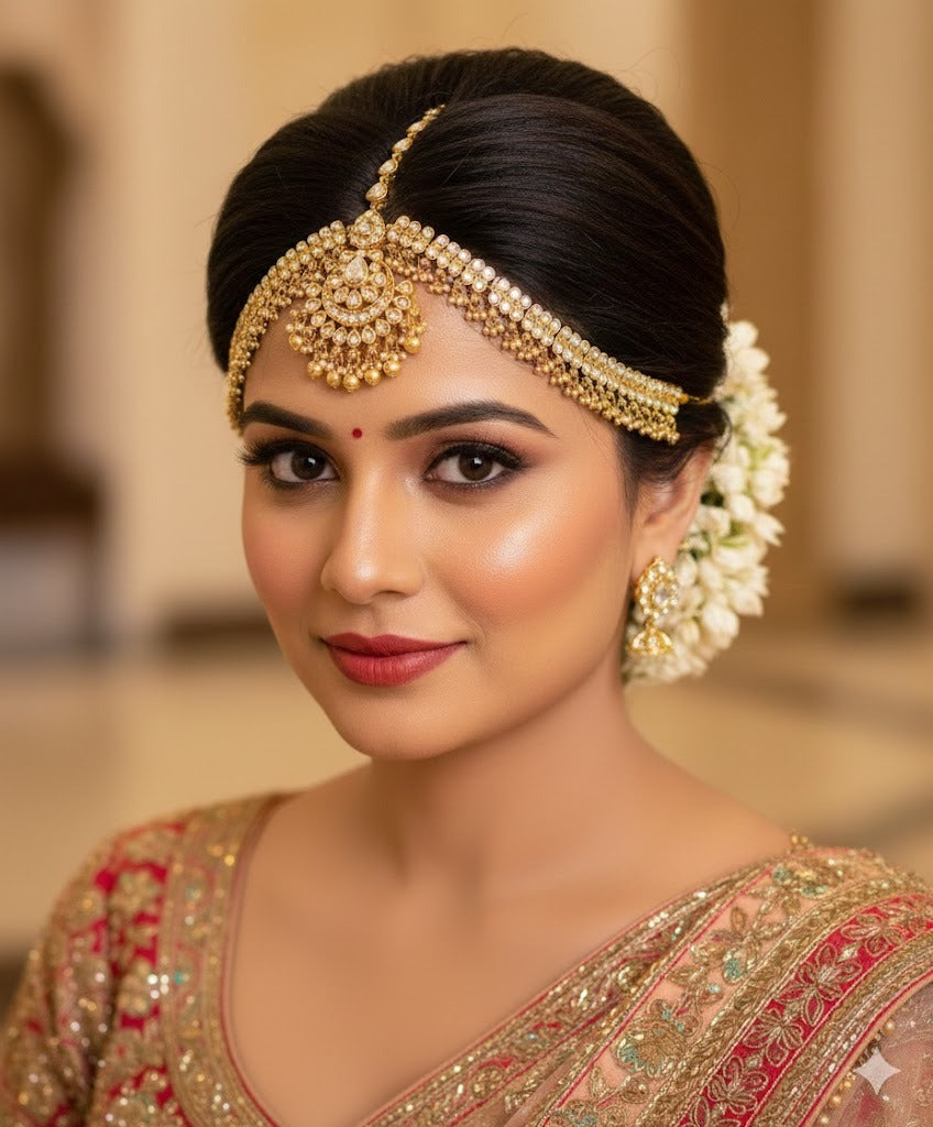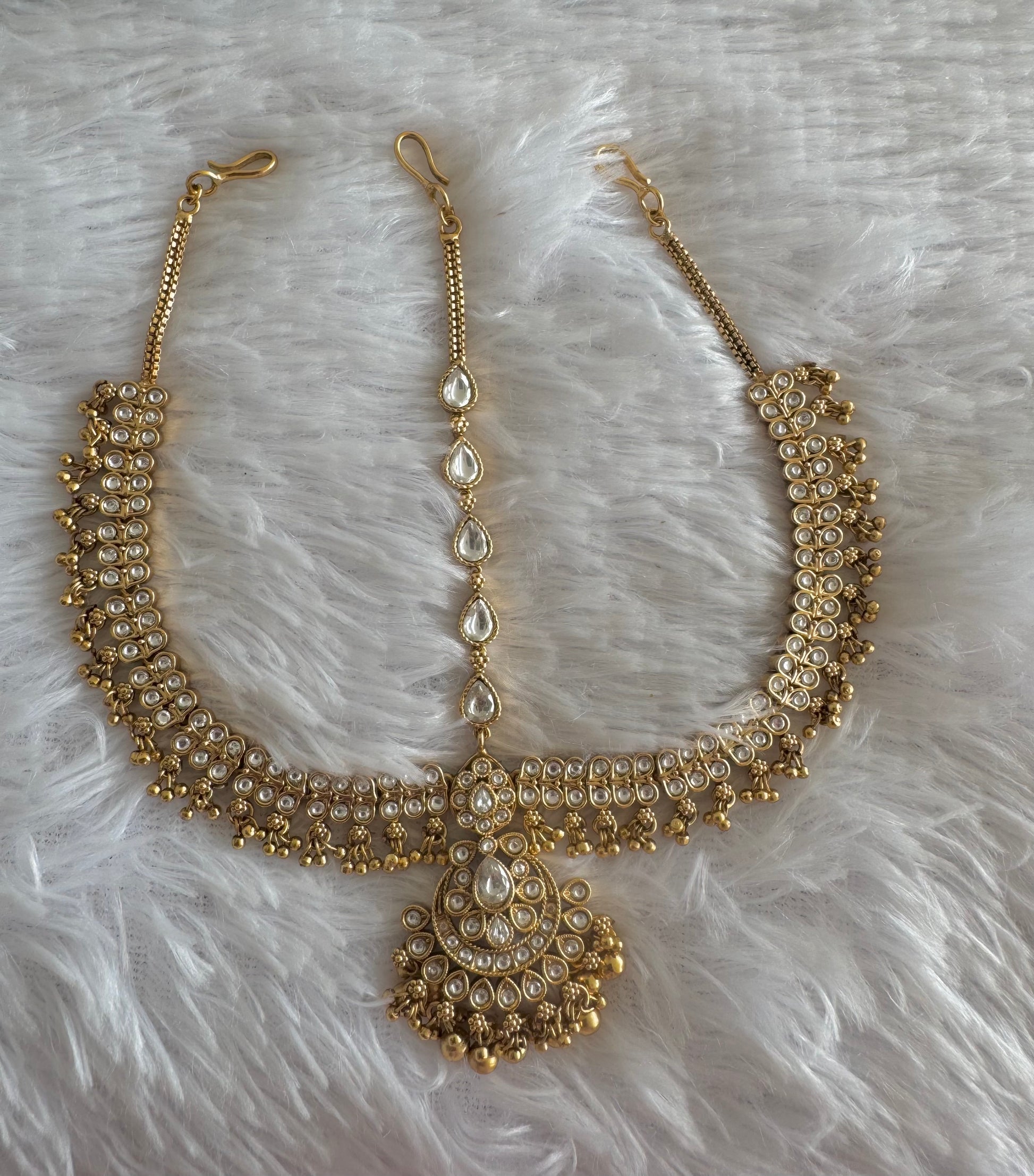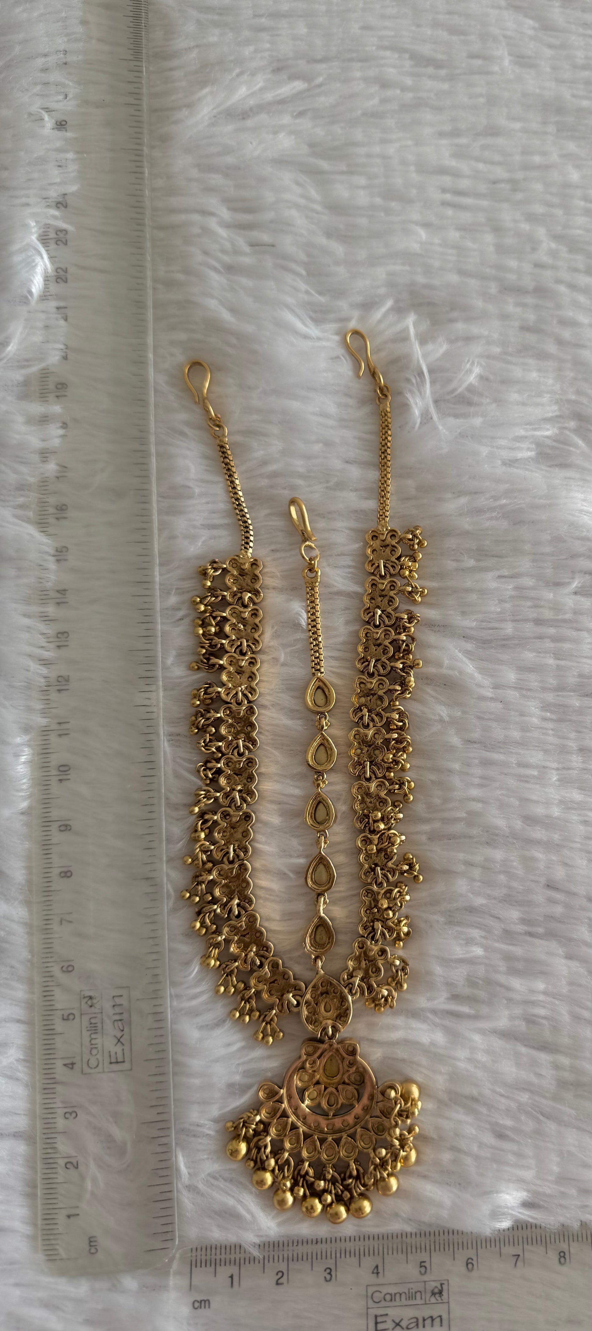 Matte finish white flower maang tikka dj-51378