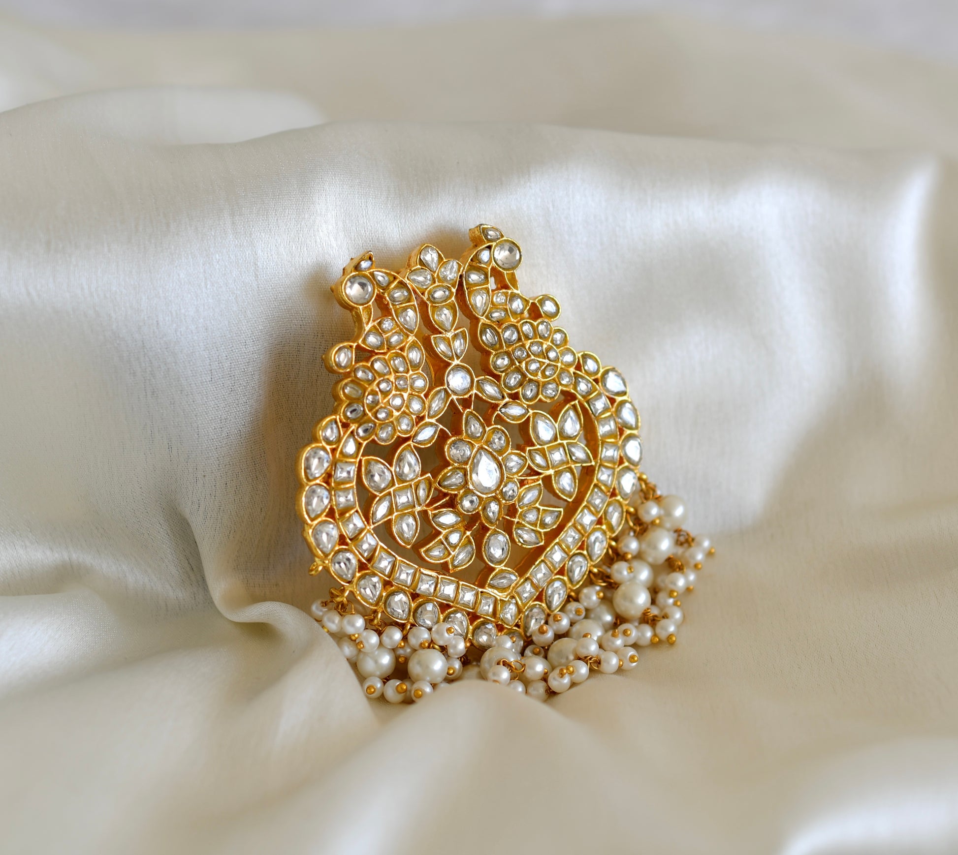 Matte finish white kundan jadau pearl peacock pendant necklace dj-52606