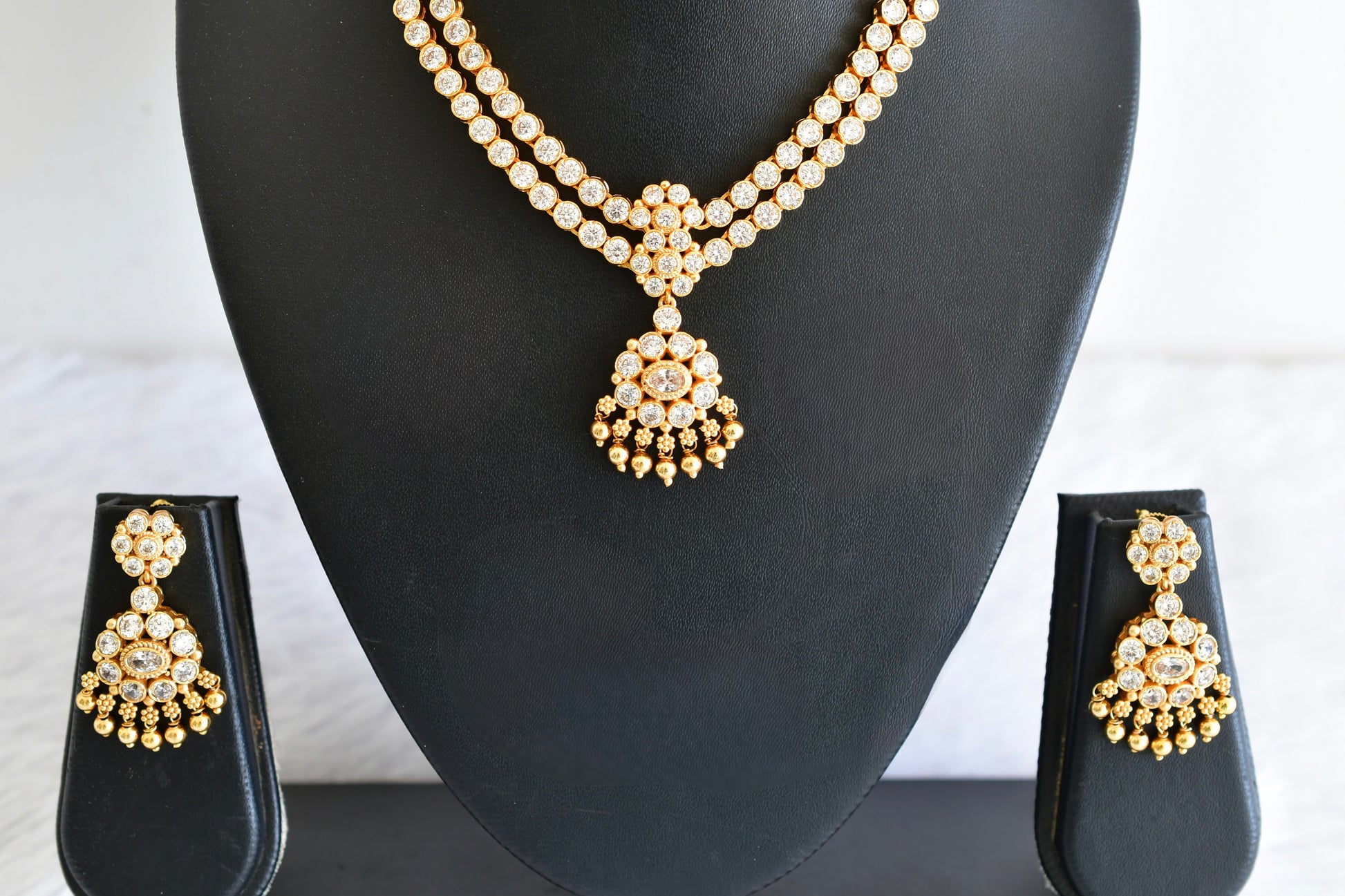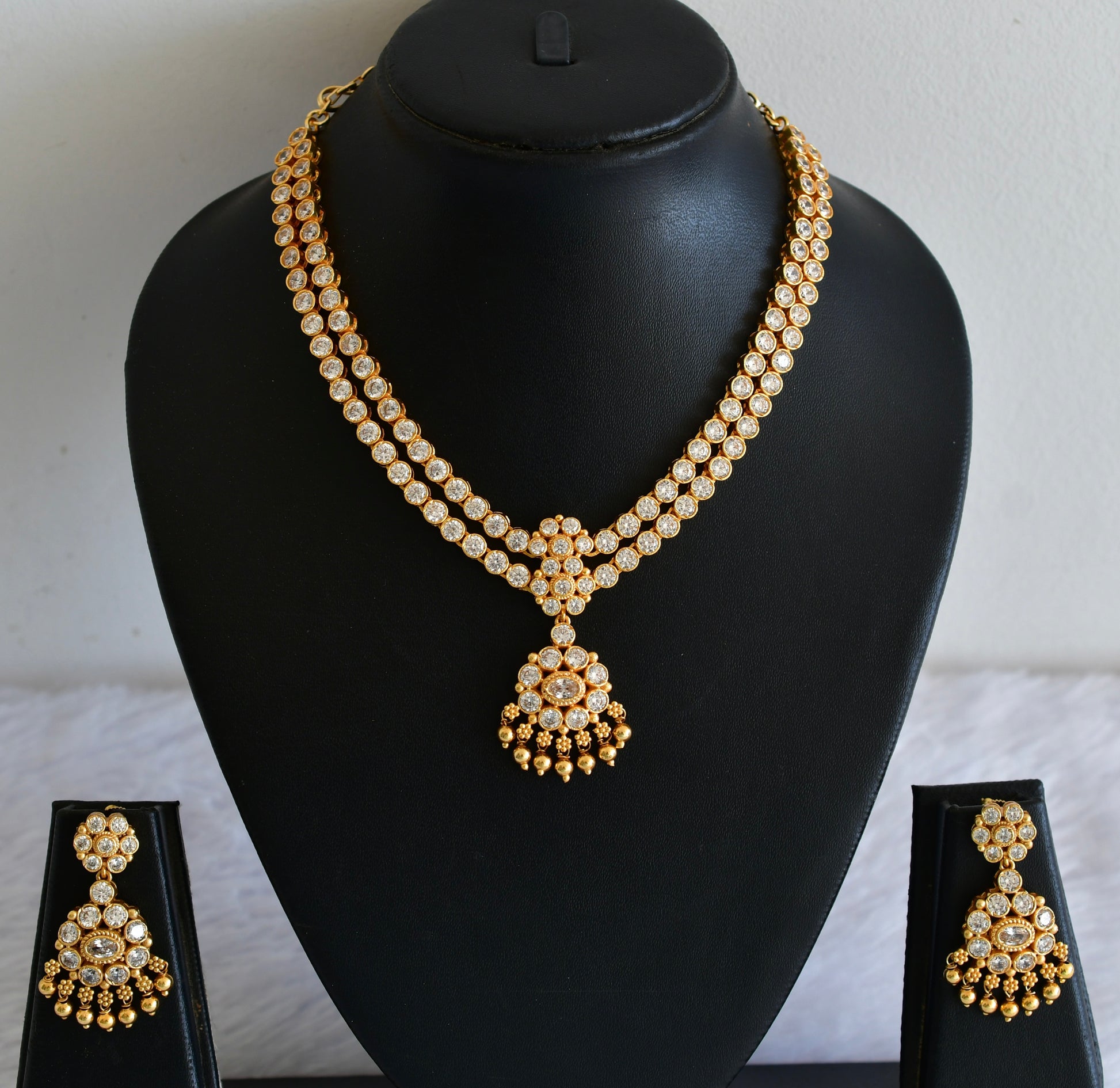 Matte finish white stone double layer attigai/necklace set dj-53181