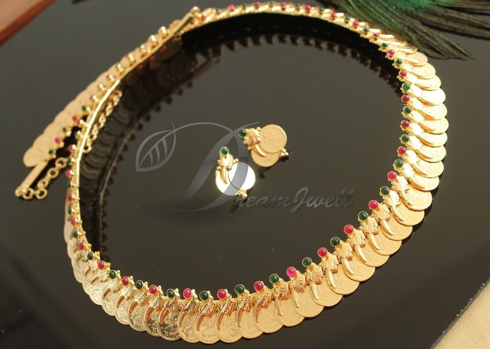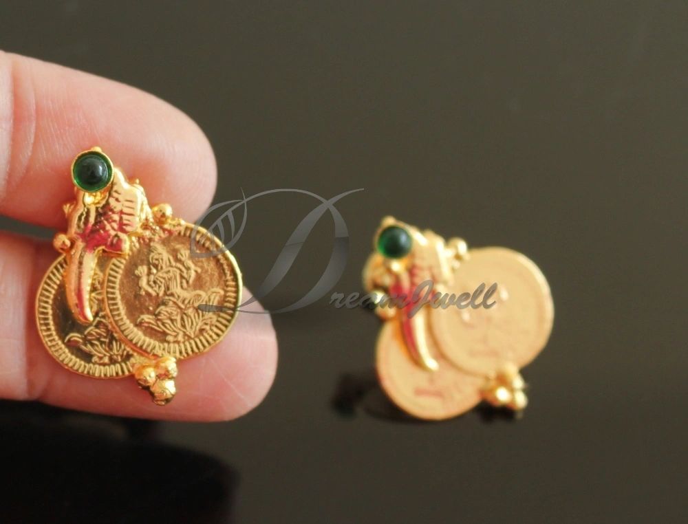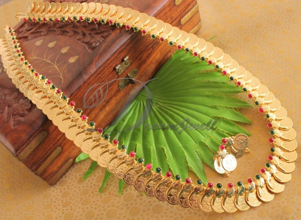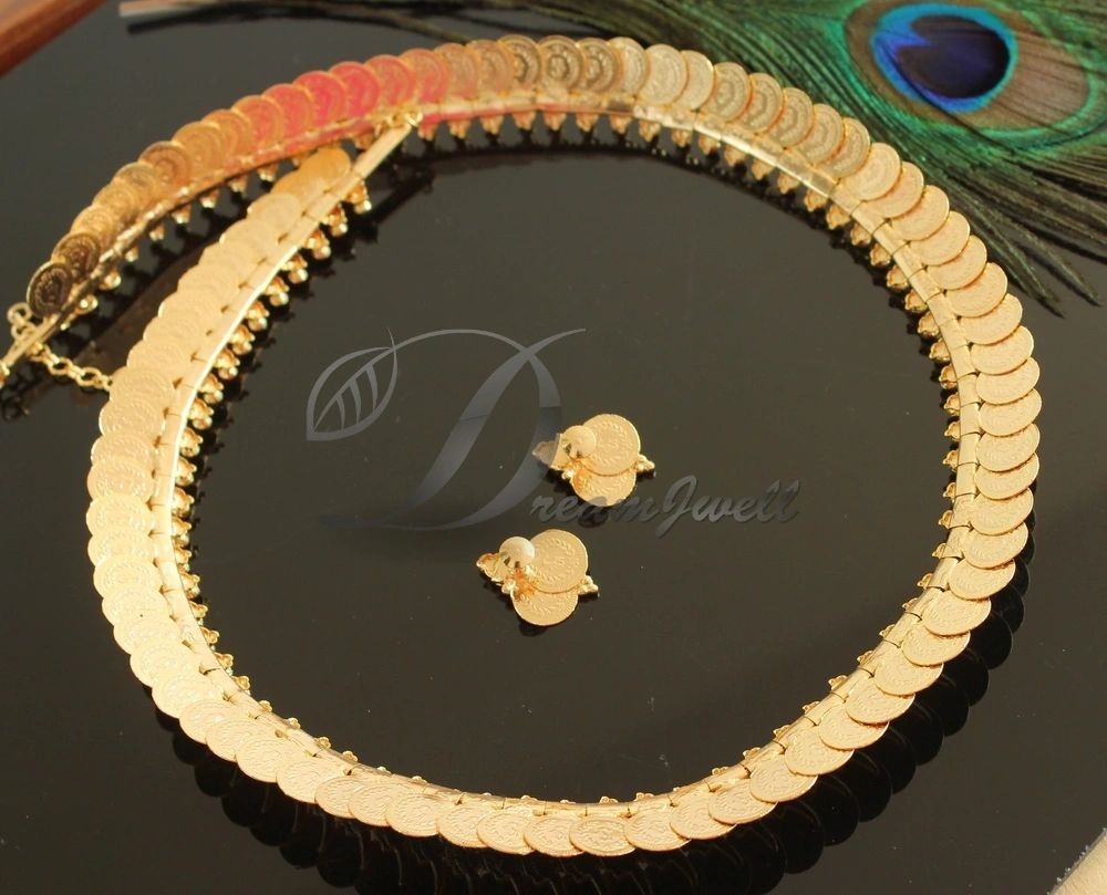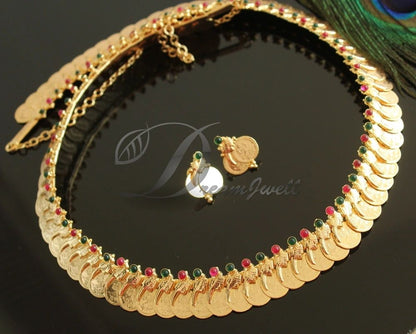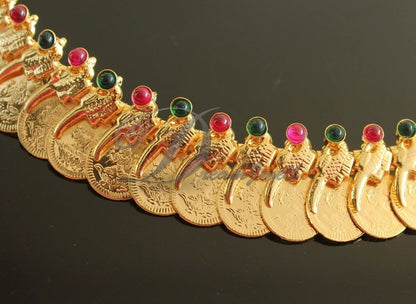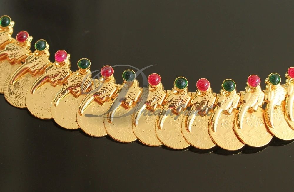 Gold Tone Kemp-green peacock Lakshmi Coin Haar Set-dj13999