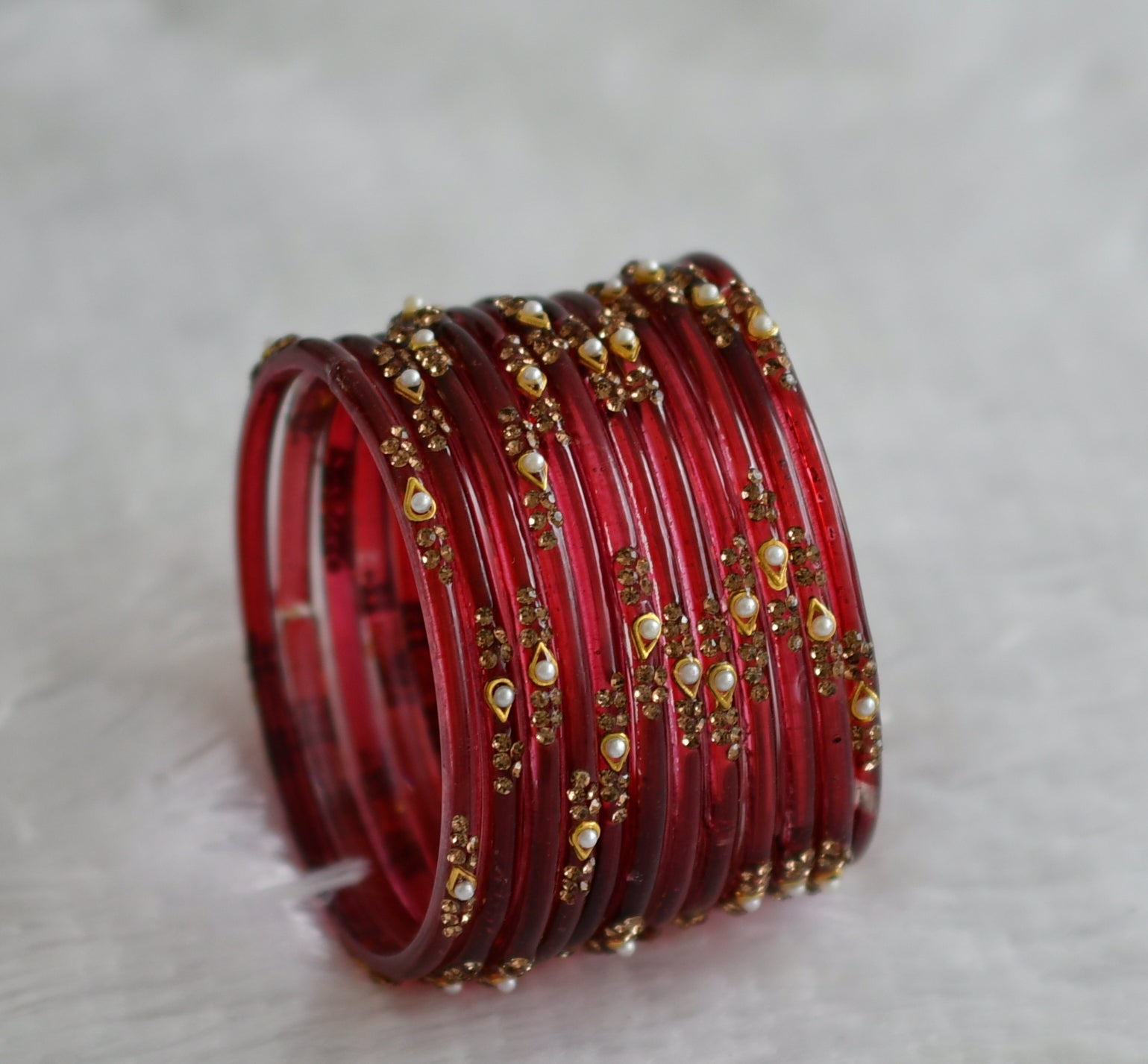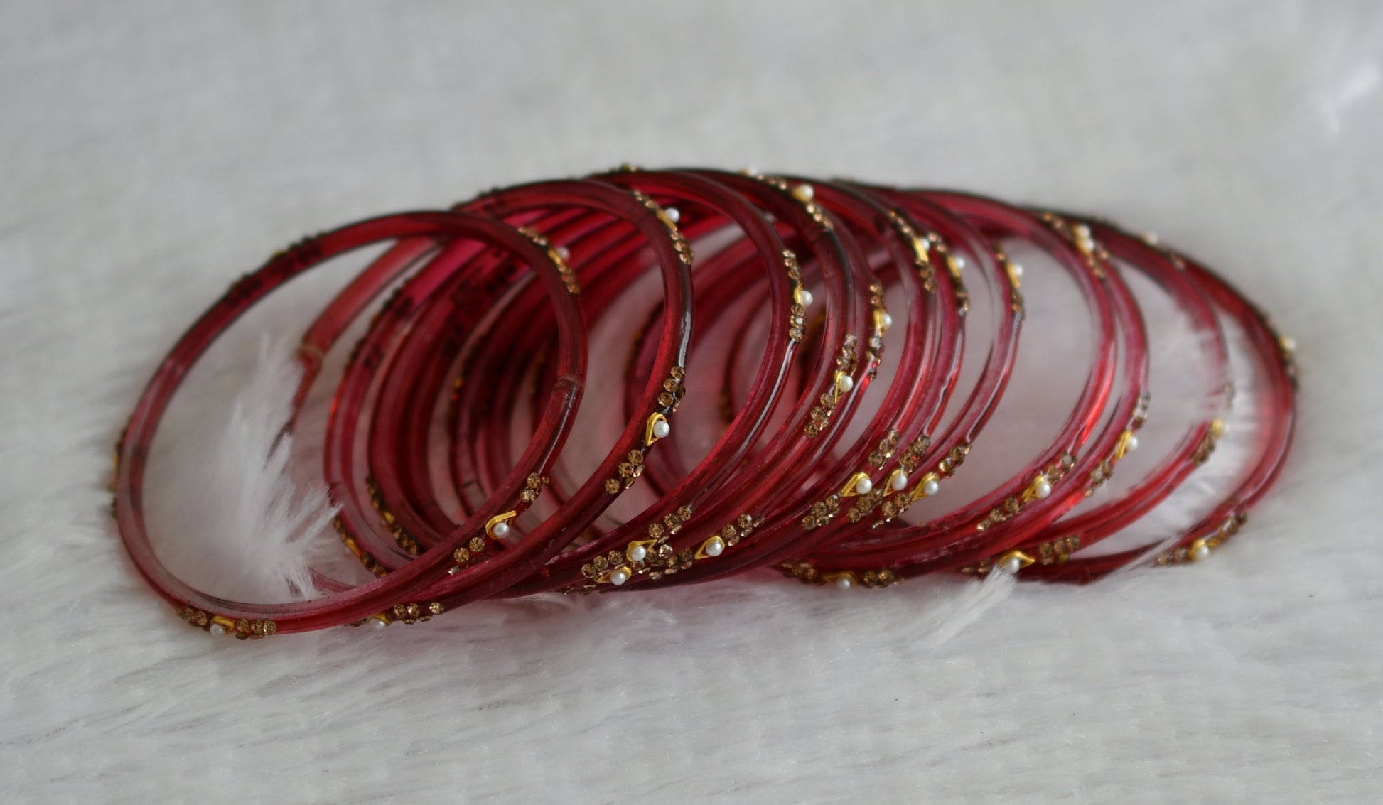Set of 12 maroon glass bangles(2.10) dj-49561