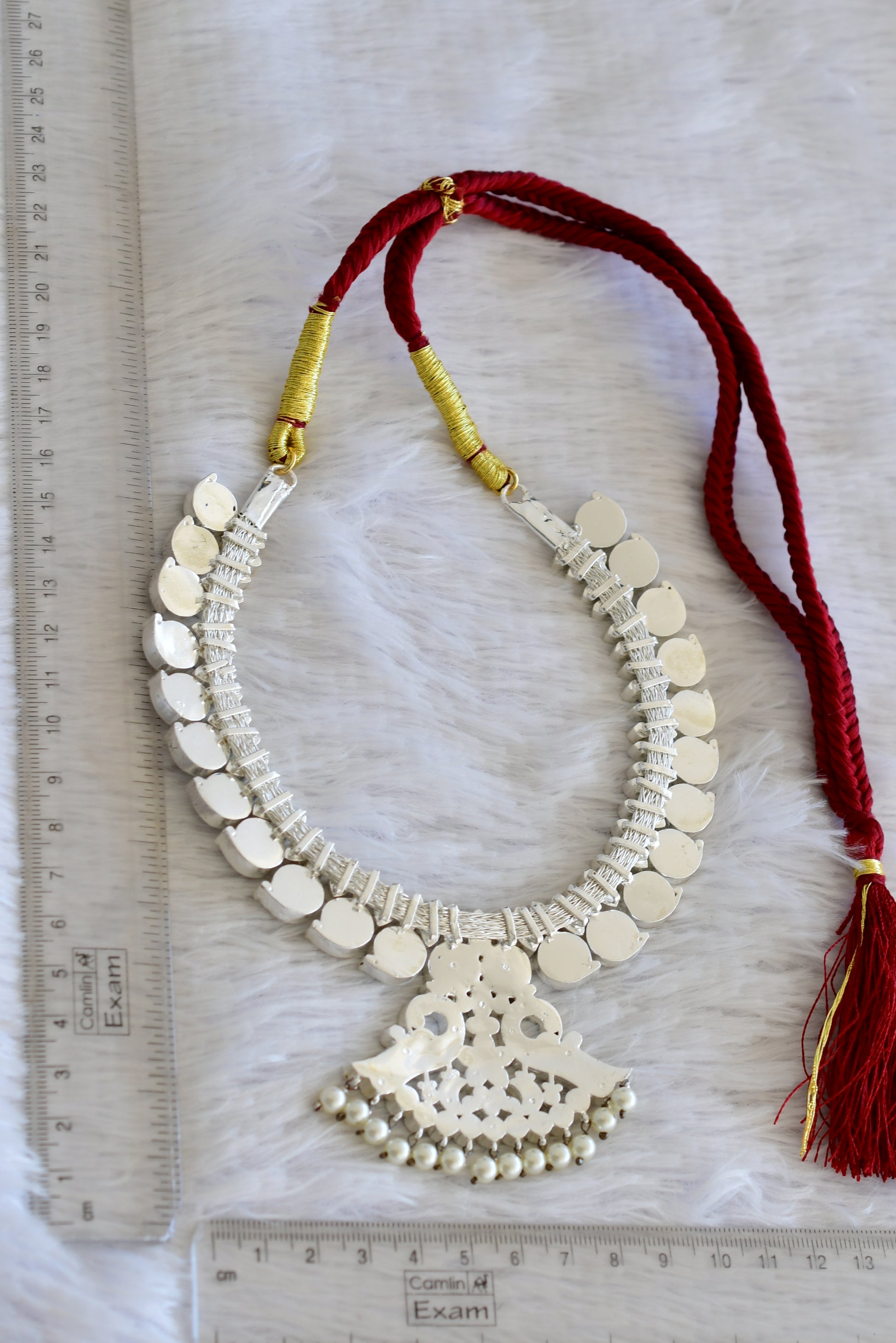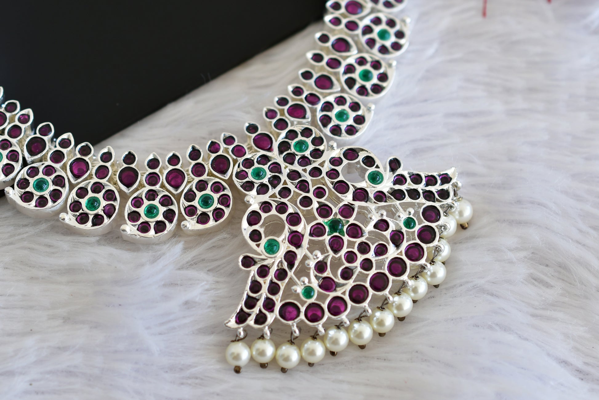 Silver tone precious kemp-green pearl mango necklace dj-52514