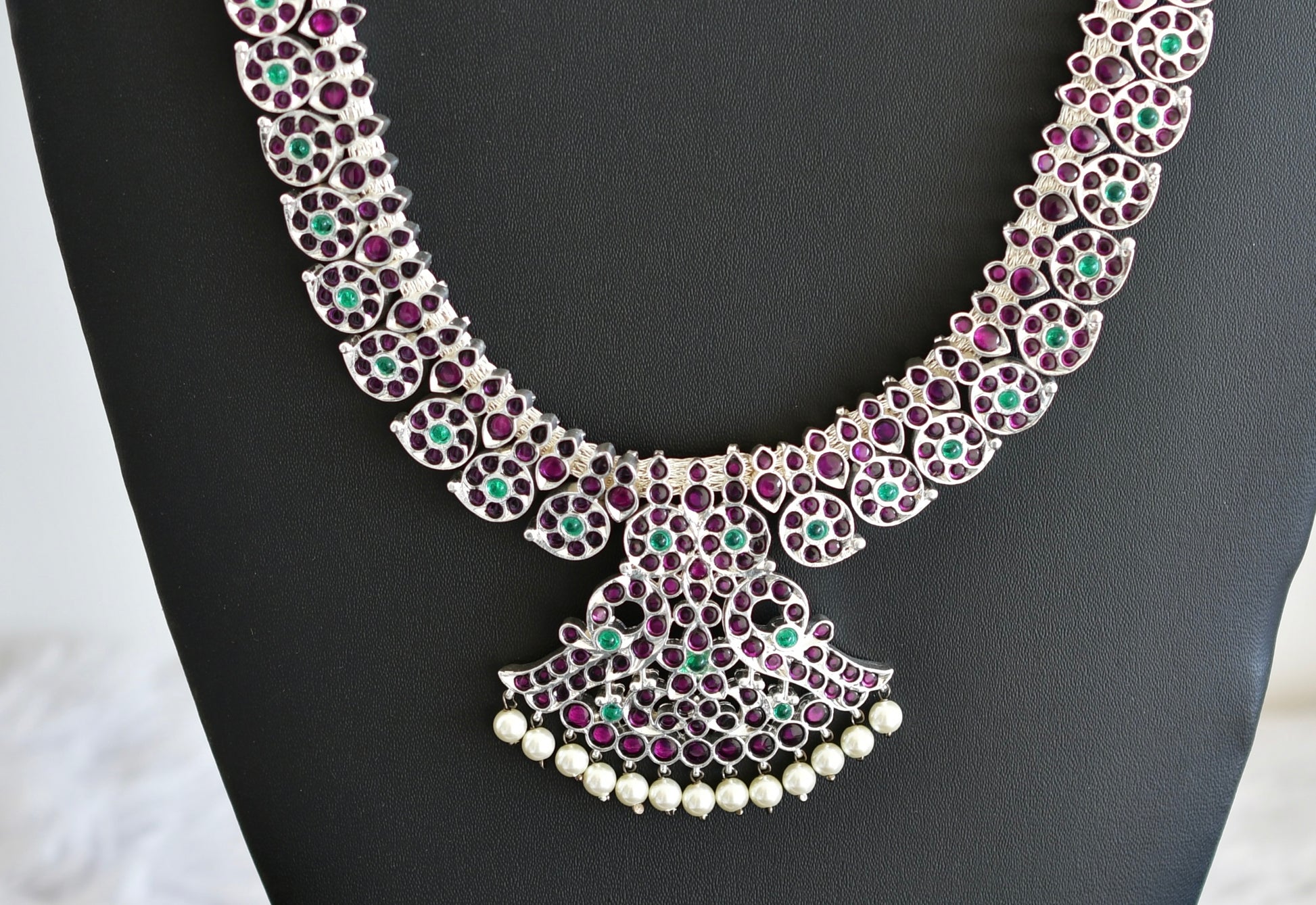 Silver tone precious kemp-green white pearl mango peacock haar Dj-52529