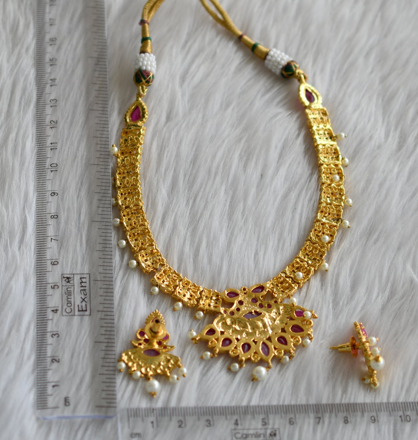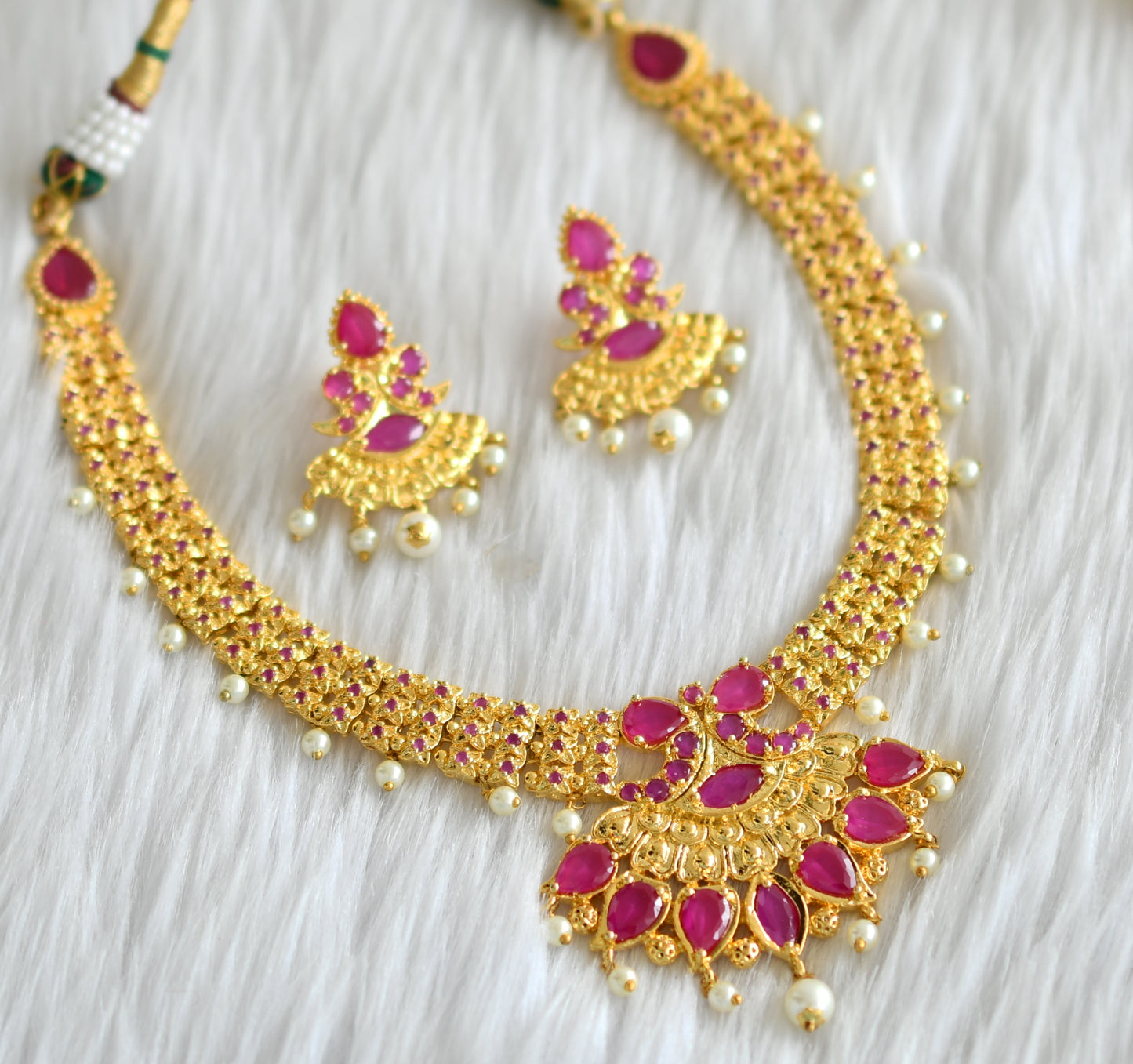 Gold tone cz-ruby pearl necklace set dj-02023