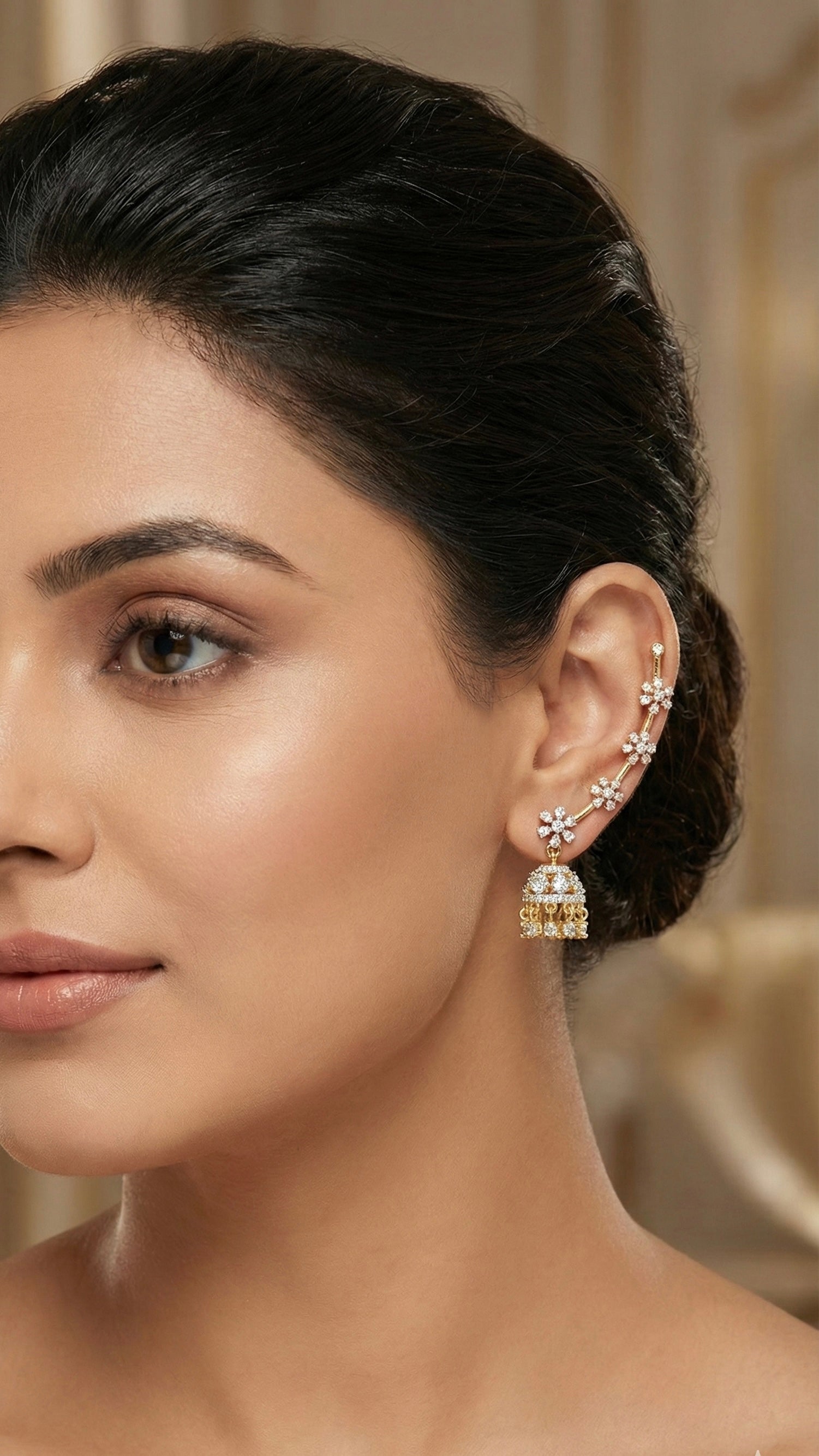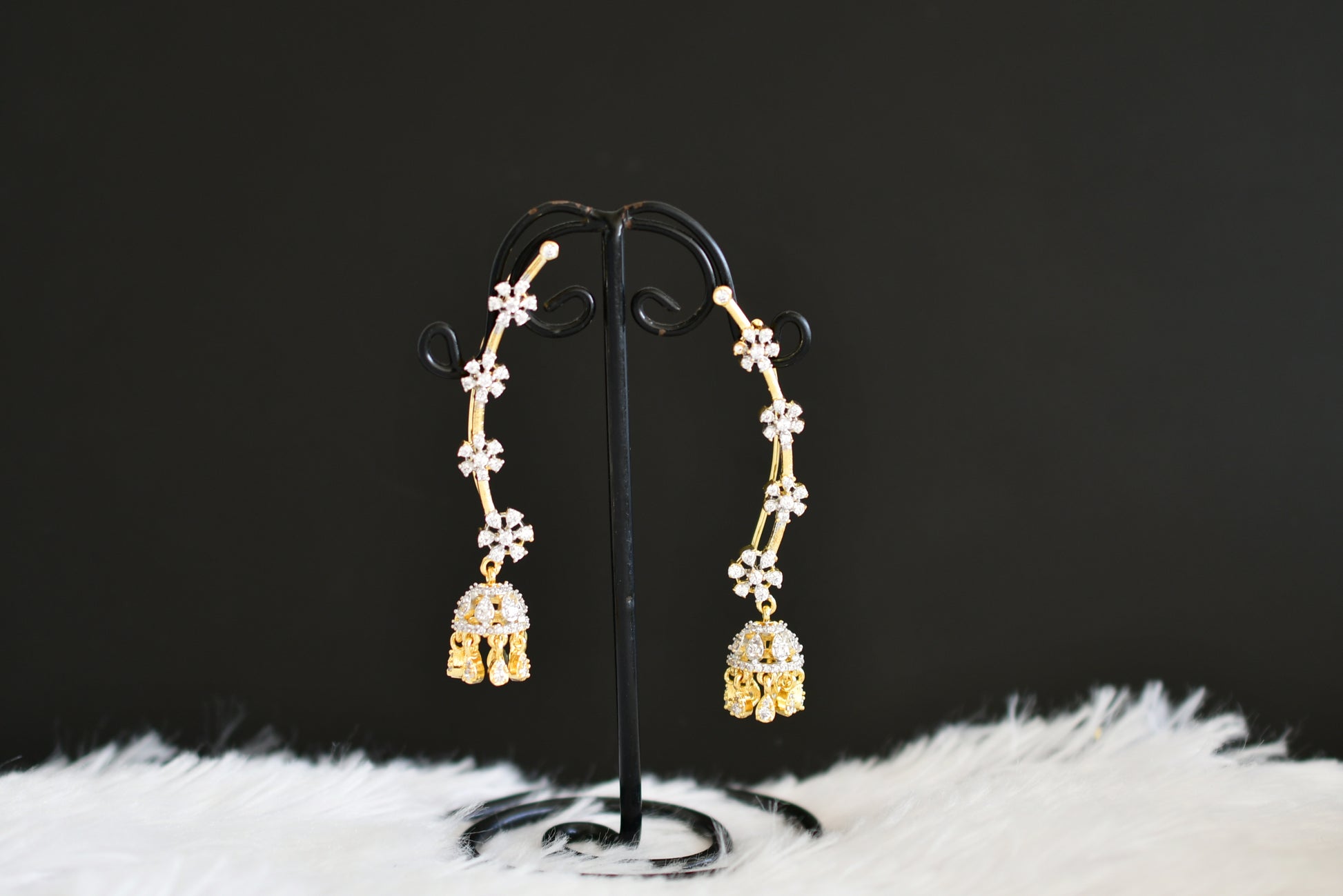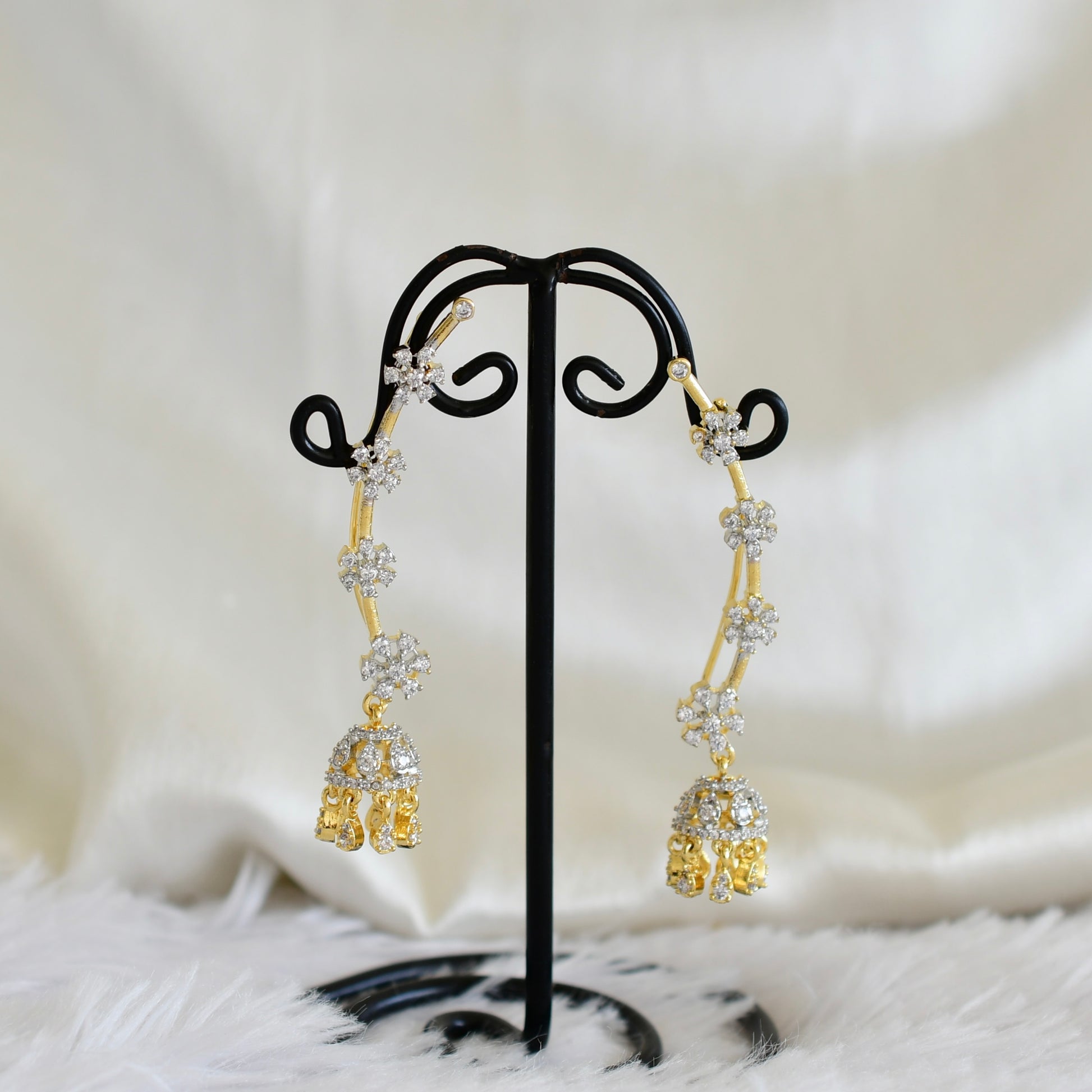 Two tone cz white slide-on flower jhumkka dj-52559